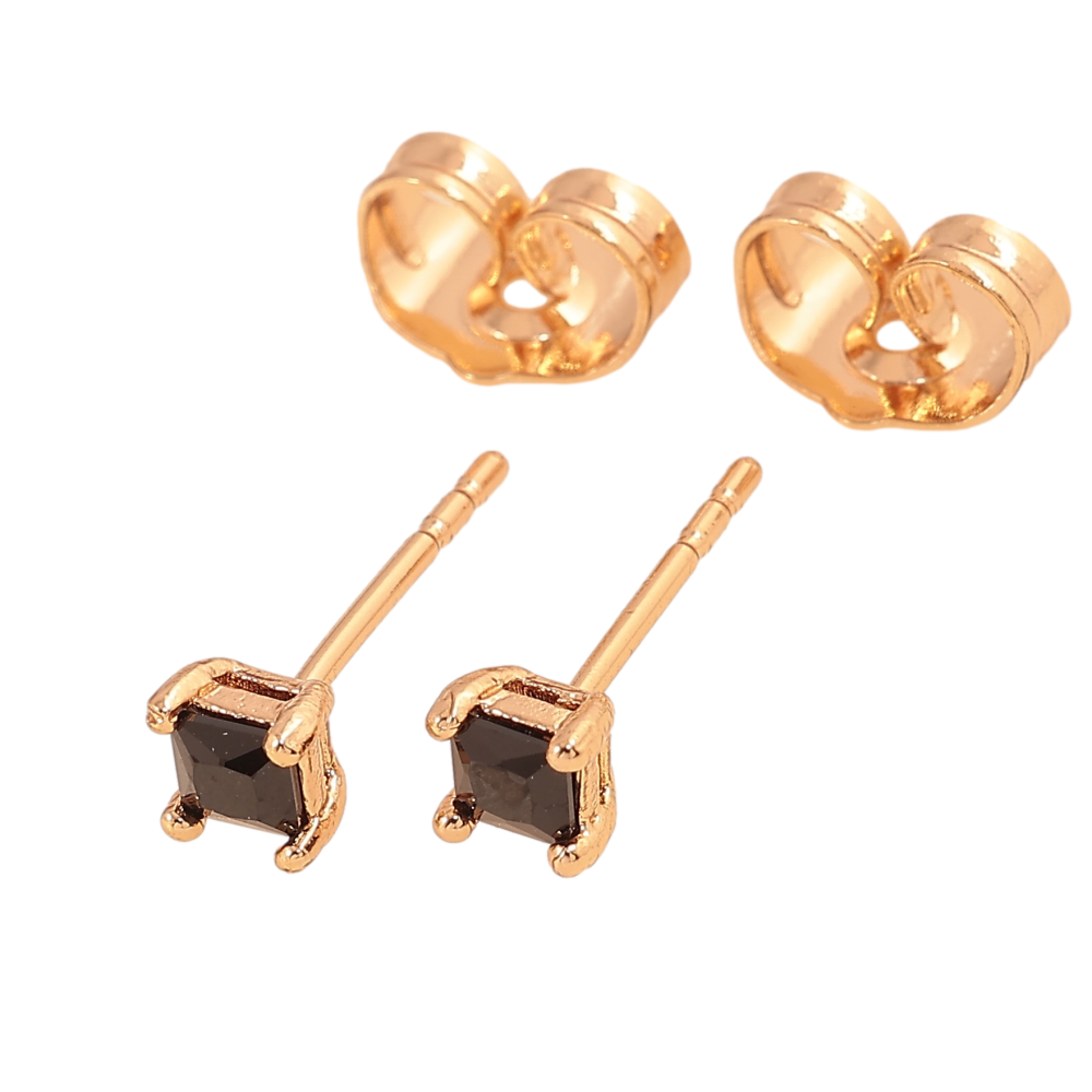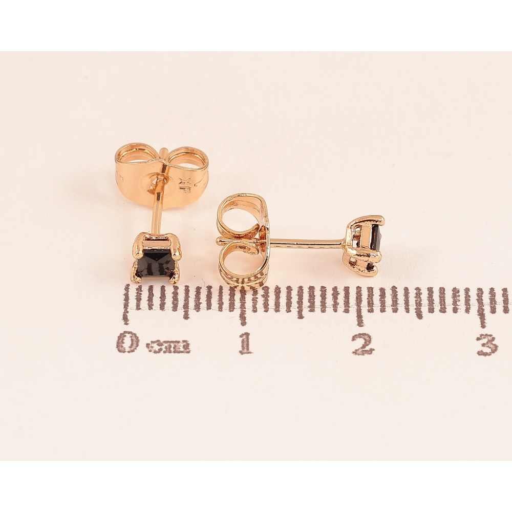 Сережки Xuping колір Позолота 18К пусети "Чорні кристали в 4-х крапановій оправі" 3х3мм