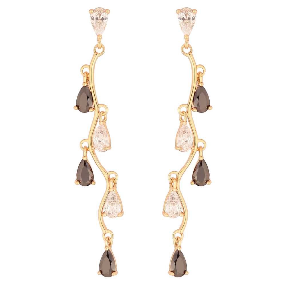Сережки Xuping колір Позолота 18К пусети "Чорно-білі кристальні підвіски"