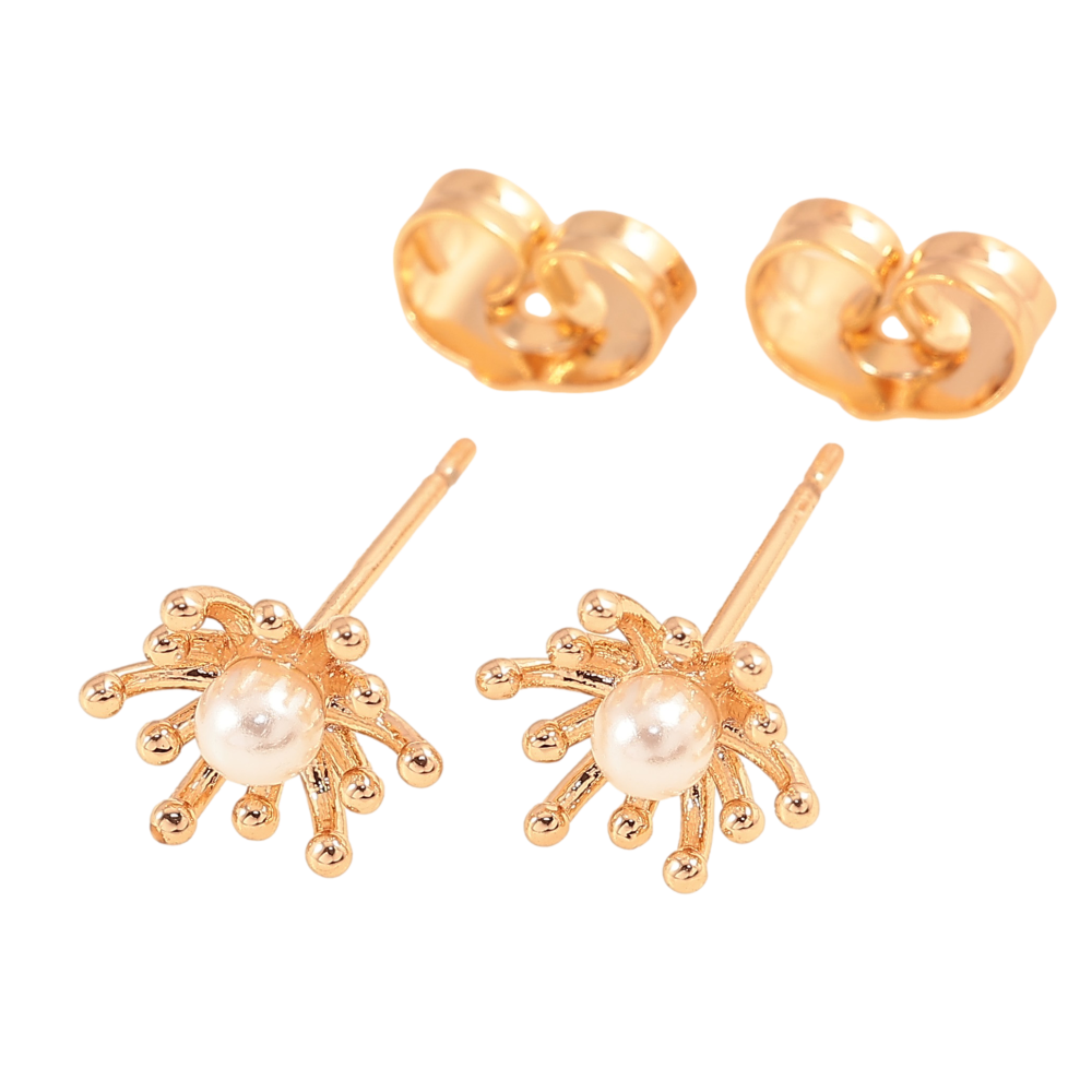 Сережки Xuping колір Позолота 18К пусети "Декоративні квіточки із перлинами"