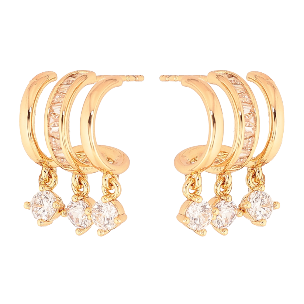 Сережки Xuping колір Позолота 18К пусети "Дуги з кристальними підвісками"