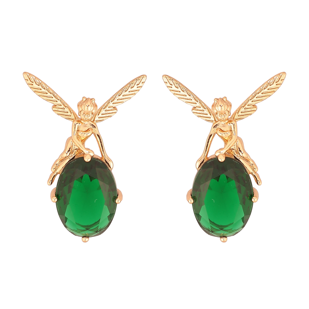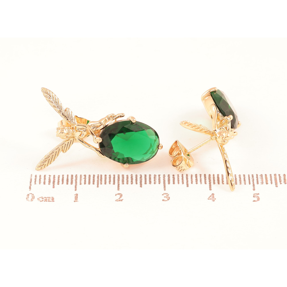 Сережки Xuping колір Позолота 18К пусети "Феї на зелених кристалах"