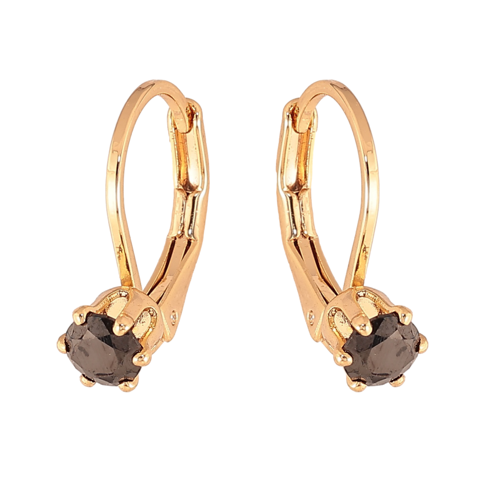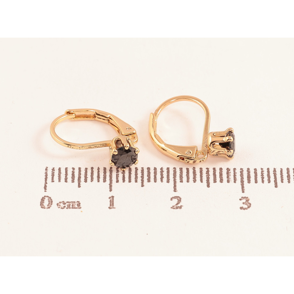 Сережки Xuping колір Позолота 18К французький замок "Чорні кристали на дужках" ø 4мм
