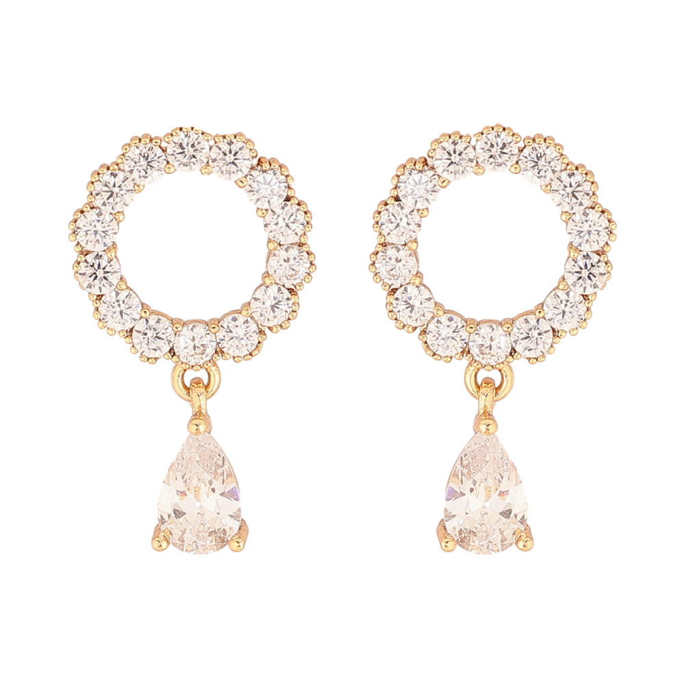 Сережки Xuping колір Позолота 18К пусети "Кристальні кільця з крапельками"
