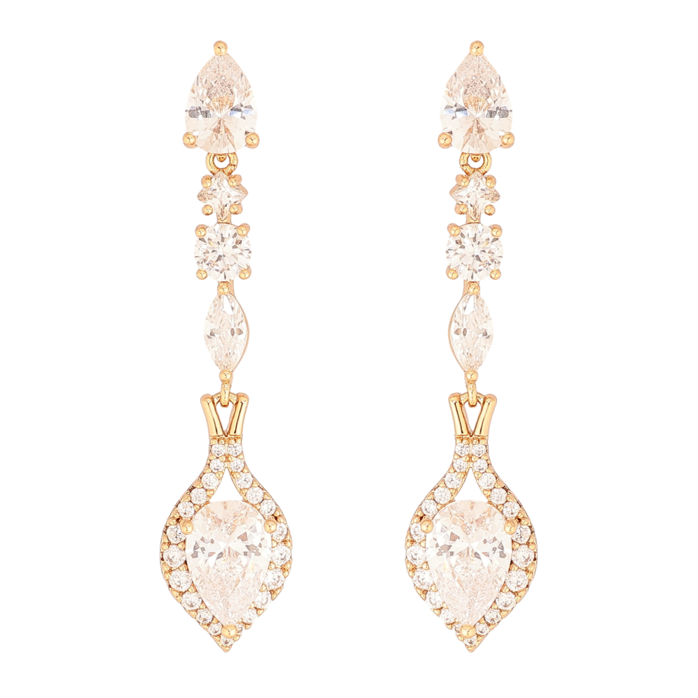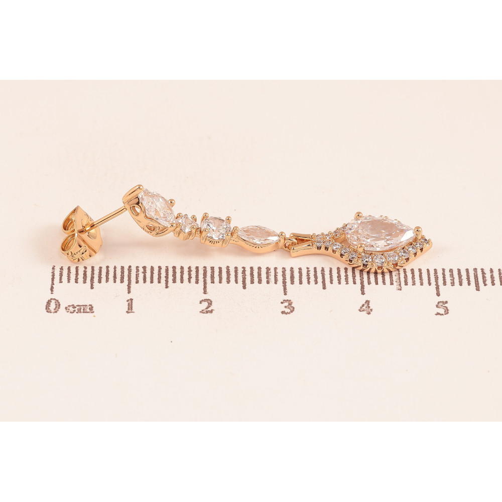 Сережки Xuping колір Позолота 18К пусети "Кристальні підвіски"