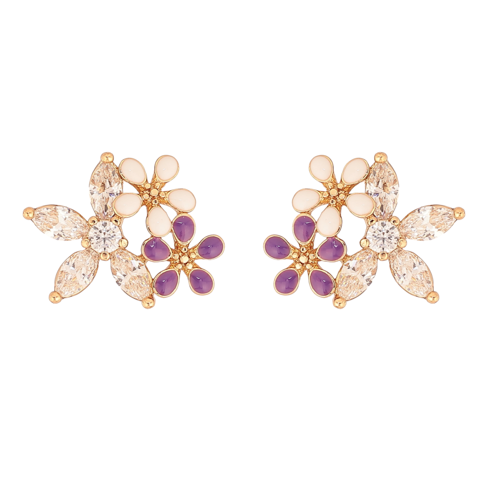 Сережки Xuping колір Позолота 18К пусети "Квіточки з кристалами та емаллю"