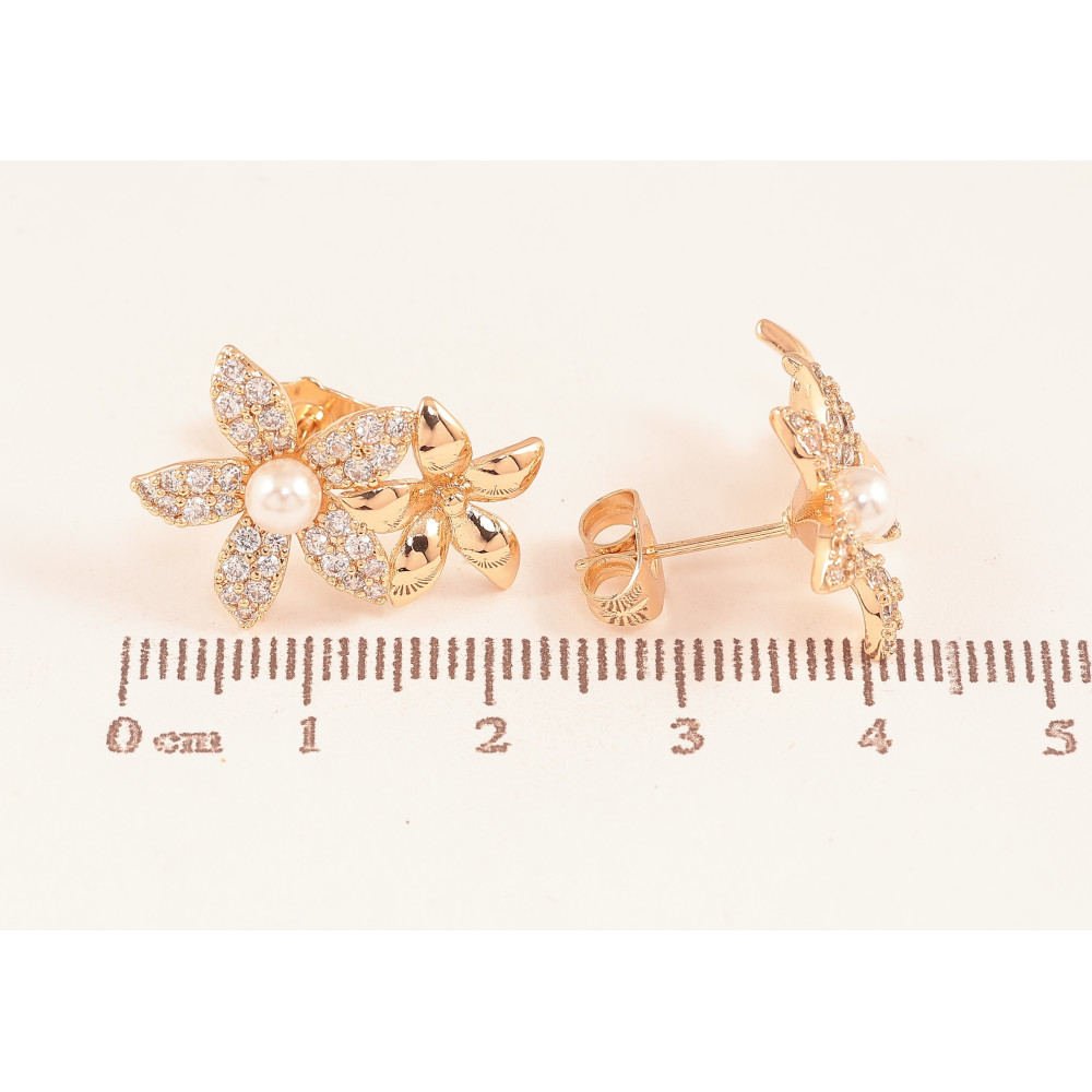 Сережки Xuping колір Позолота 18К пусети "Квіточки з кристалами та перлинками"