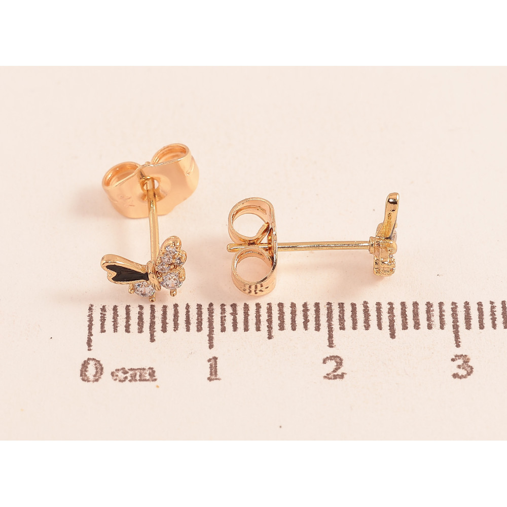 Сережки Xuping колір Позолота 18К пусети "Метелики з кристалами та чорною емаллю"