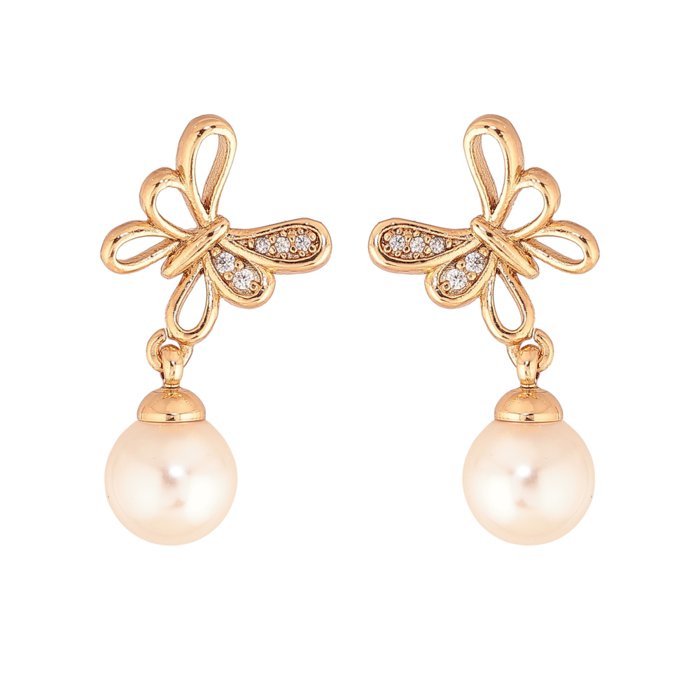 Сережки Xuping колір Позолота 18К пусети "Метелики з перлинними підвісками"