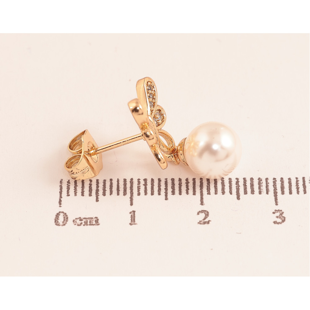 Сережки Xuping колір Позолота 18К пусети "Метелики з перлинними підвісками" фото №1