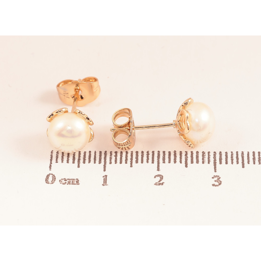 Сережки Xuping колір Позолота 18К пусети "Перлинні квіточки"