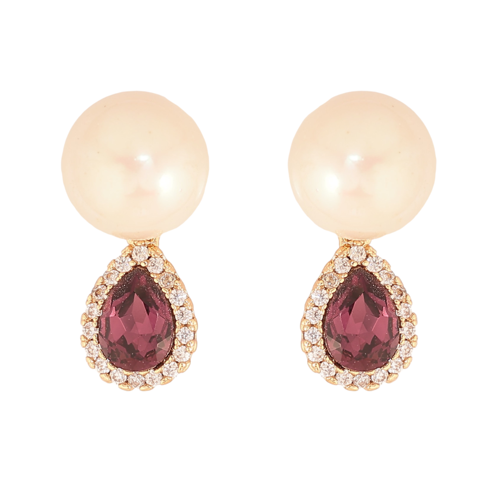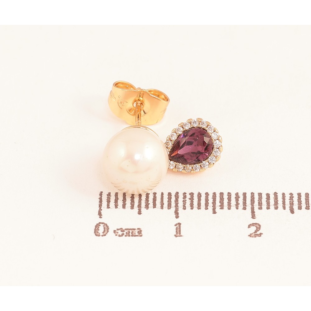 Сережки Xuping колір Позолота 18К пусети "Перлини з бордовими кристалами"