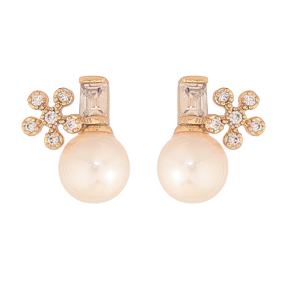 Сережки Xuping колір Позолота 18К пусети "Перлини з кристальними квіточками"