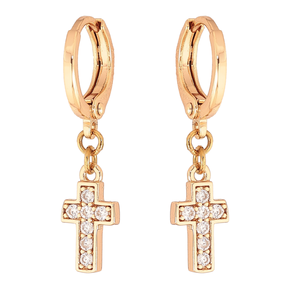 Сережки Xuping колір Позолота 18К підвіски на колечках "Хрестики"