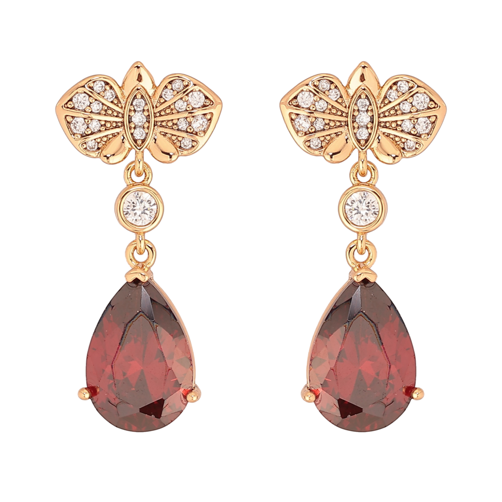 Сережки Xuping колір Позолота 18К пусети "Підвіски з червоними кристалами"