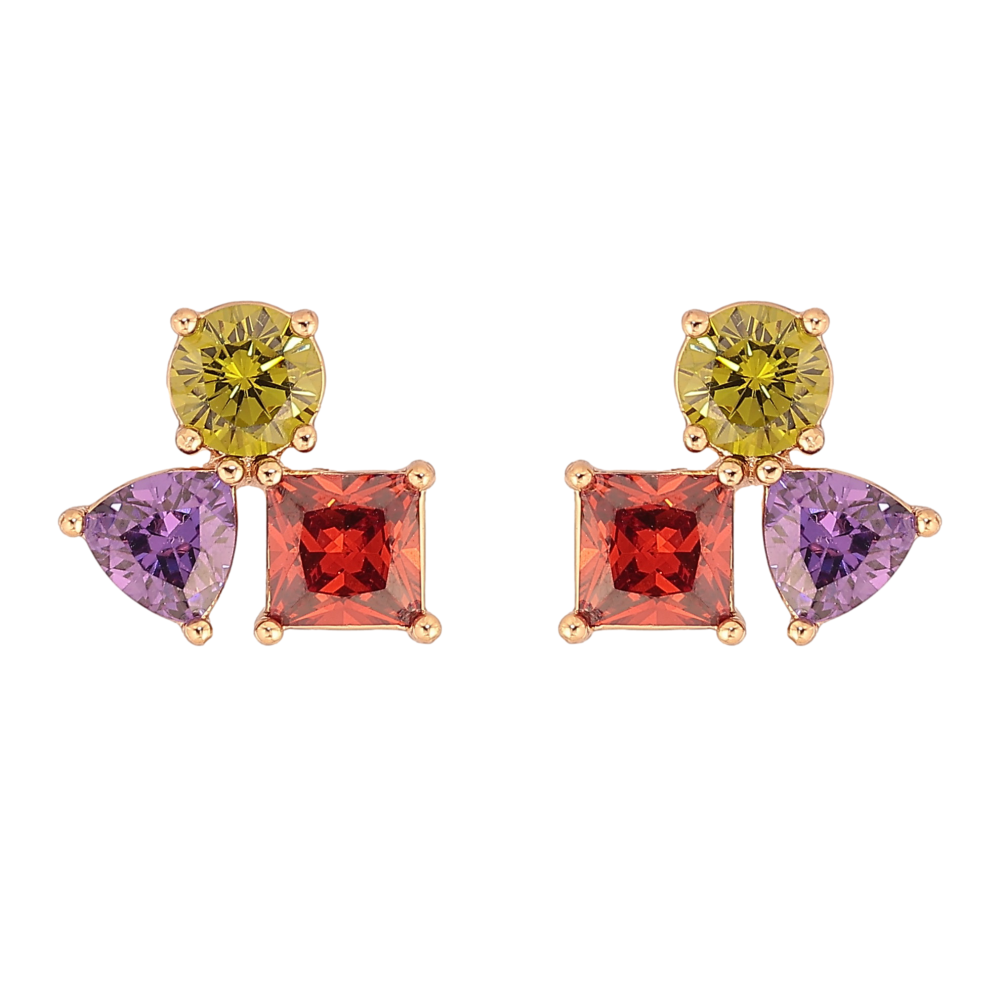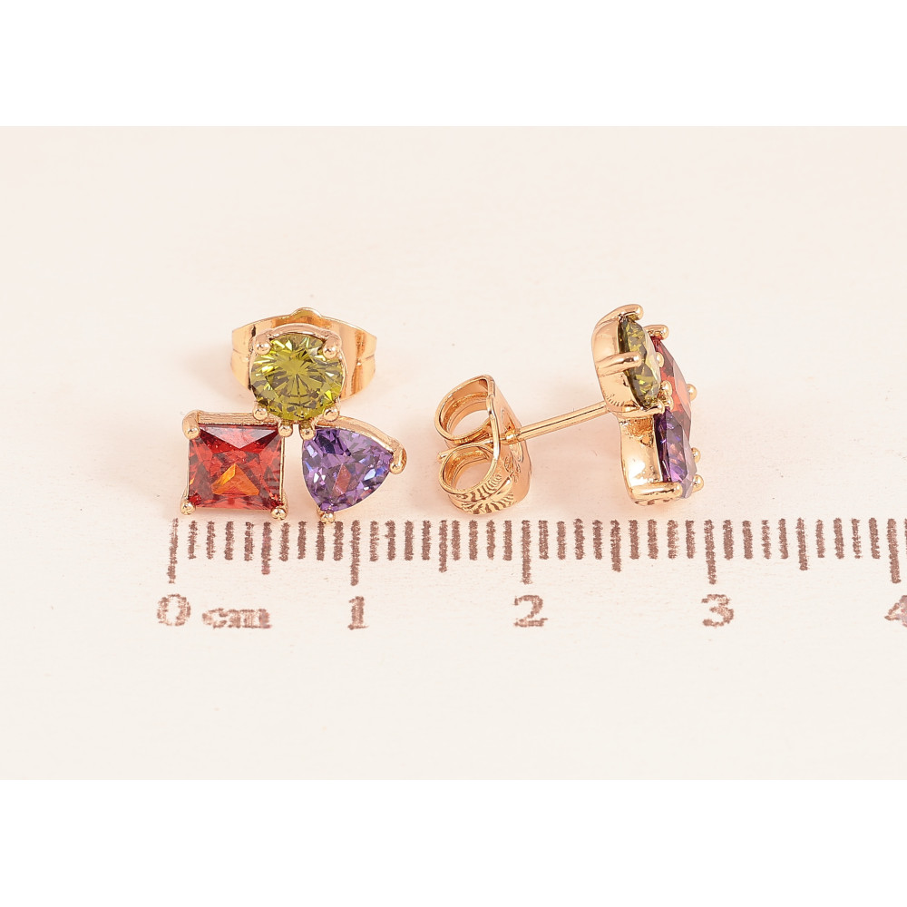 Сережки Xuping колір Позолота 18К пусети "Різнокольорові кристали"
