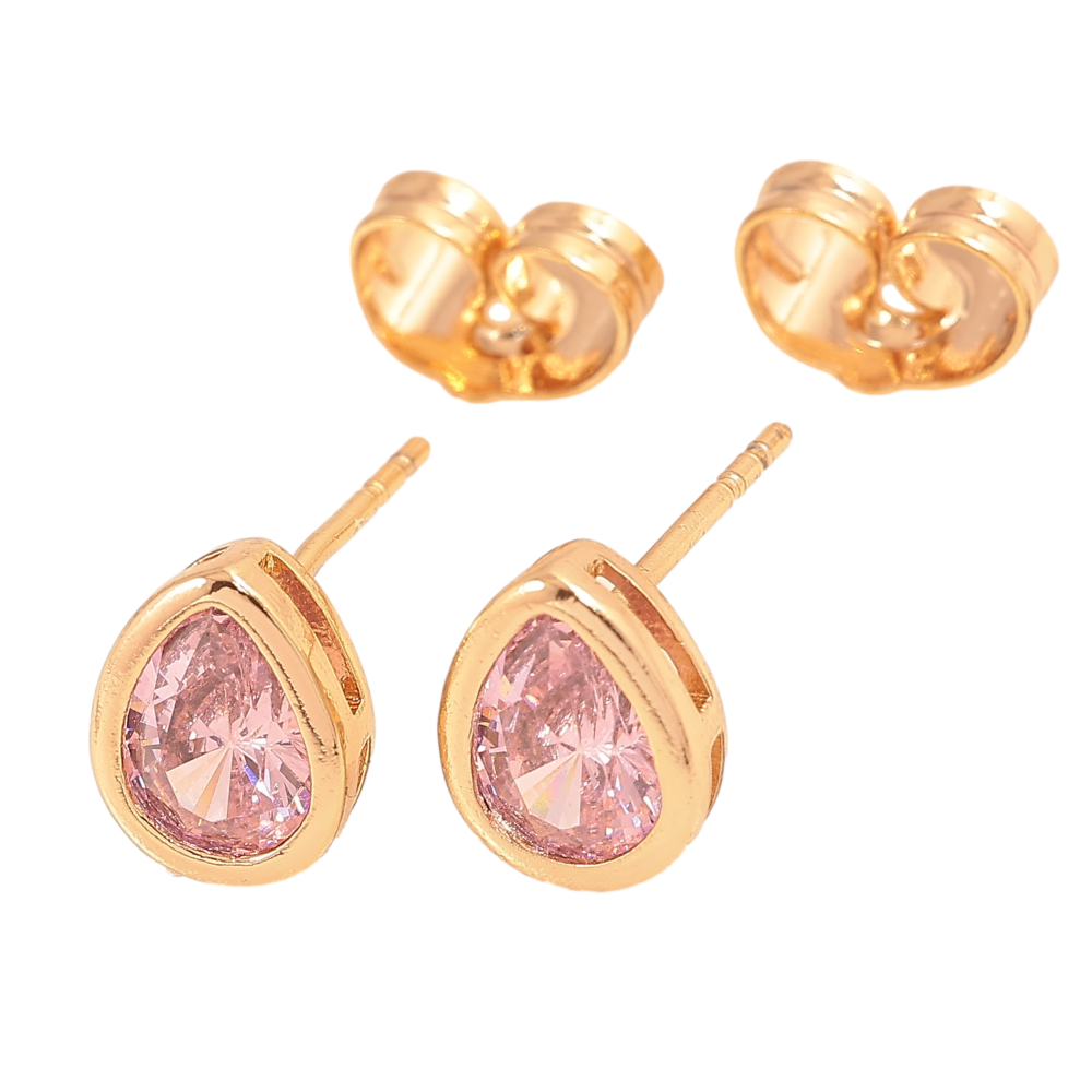 Сережки Xuping колір Позолота 18К пусети "Рожеві кристальні крапельки"