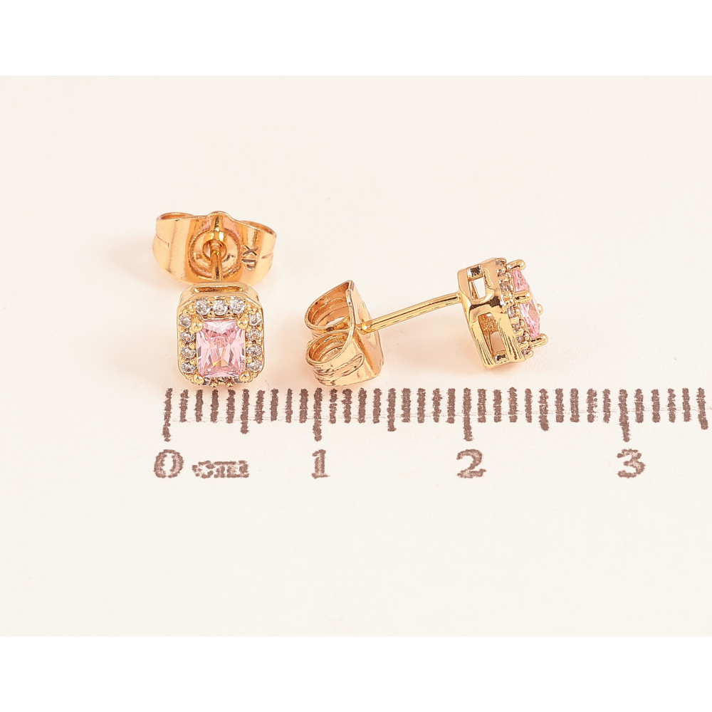 Сережки Xuping колір Позолота 18К пусети "Рожеві кристали в обрамленні"