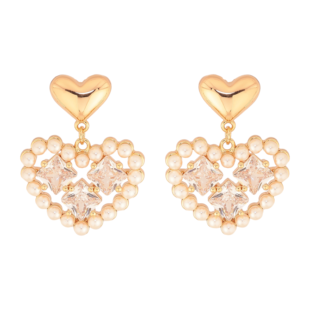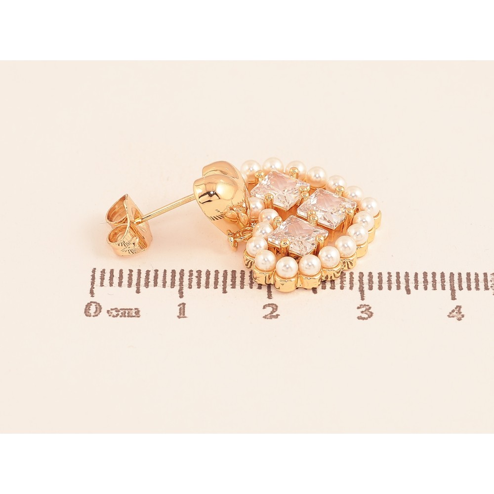Сережки Xuping колір Позолота 18К пусети "Сердечки з кристалами та перлинами"