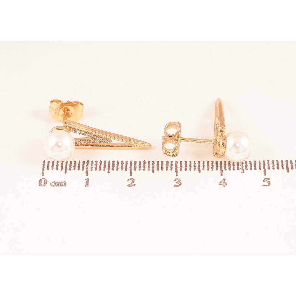 Сережки Xuping колір Позолота 18К пусети "Візерунок перлинами та кристалами"