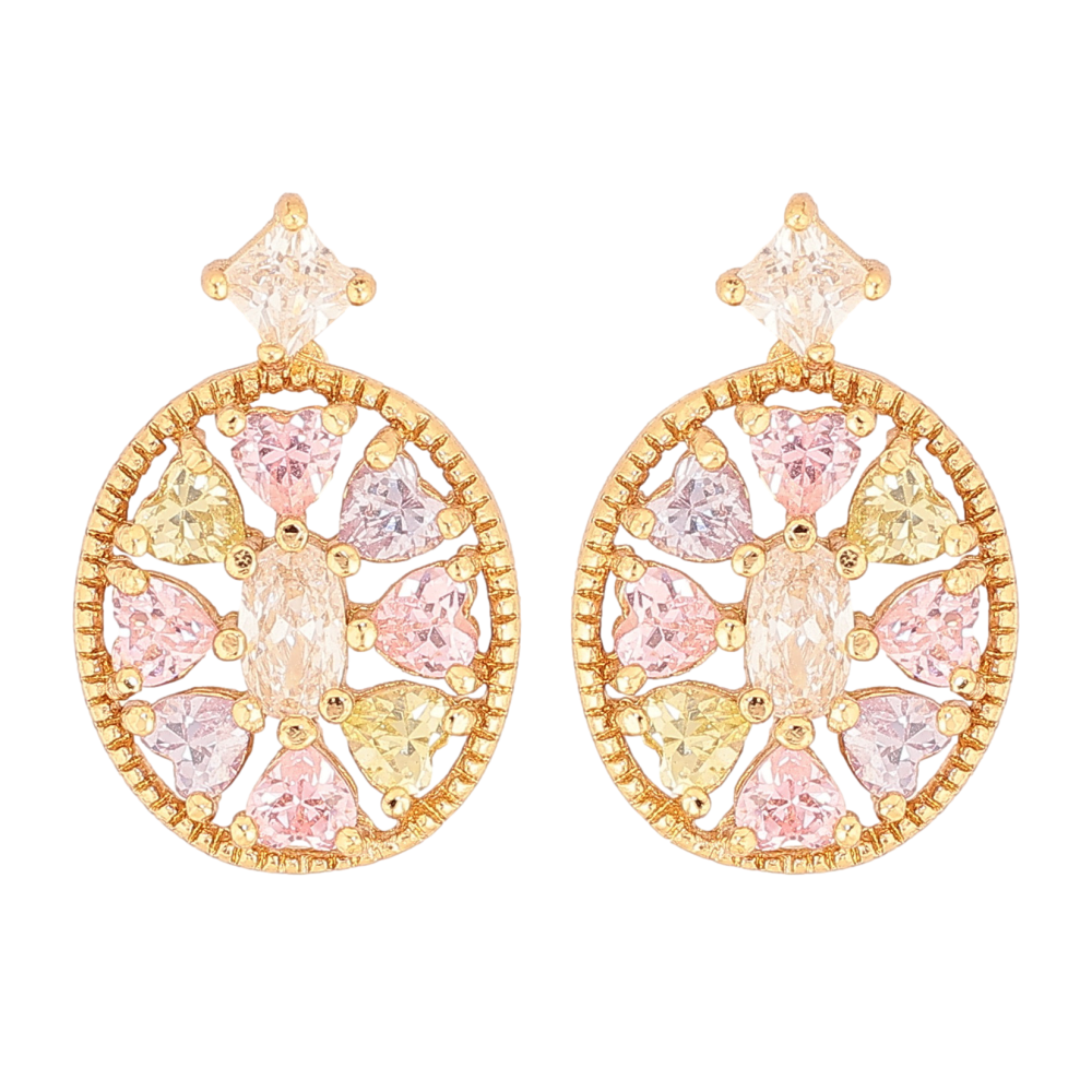 Сережки Xuping колір Позолота 18К пусети "Візерунок з кольоровими кристалами"