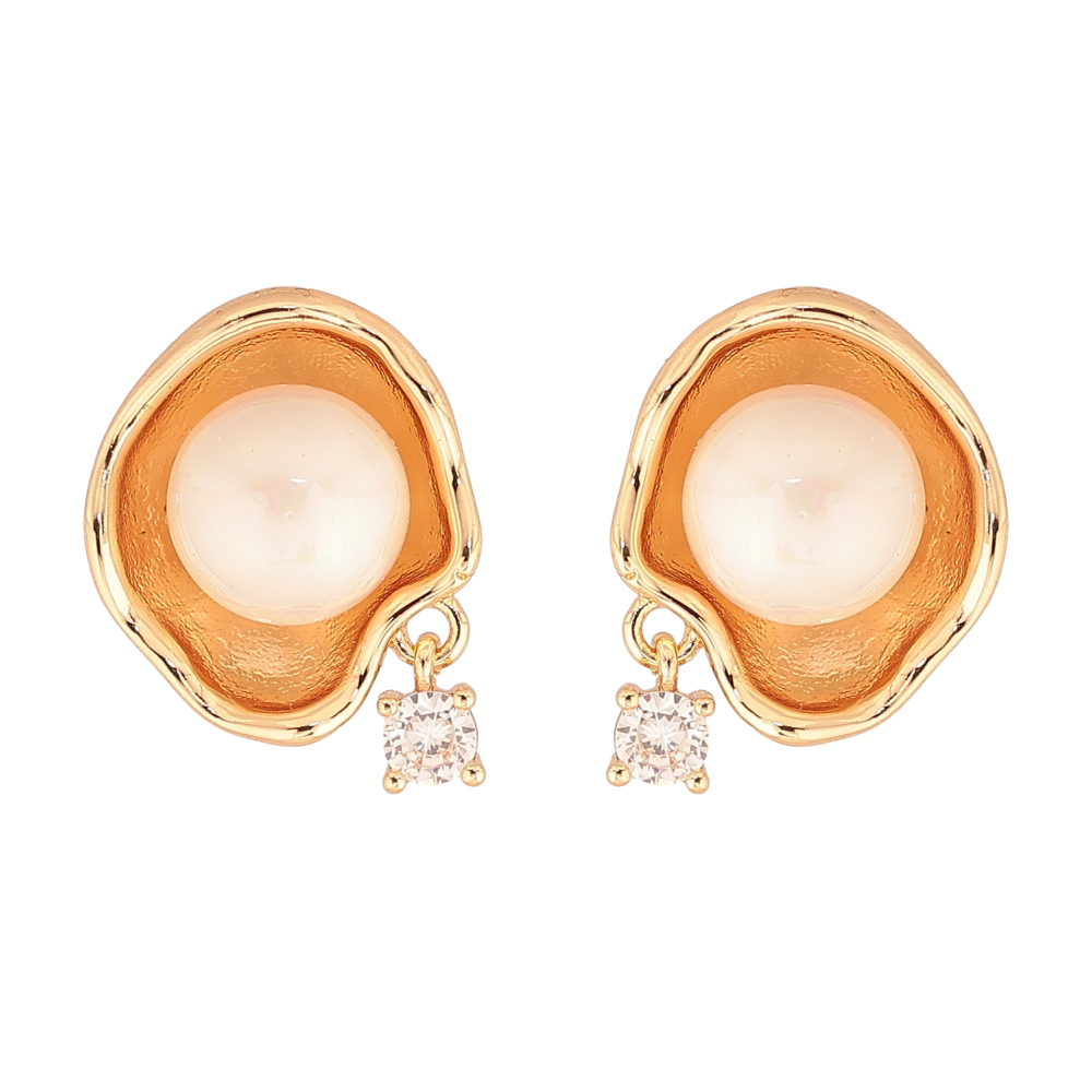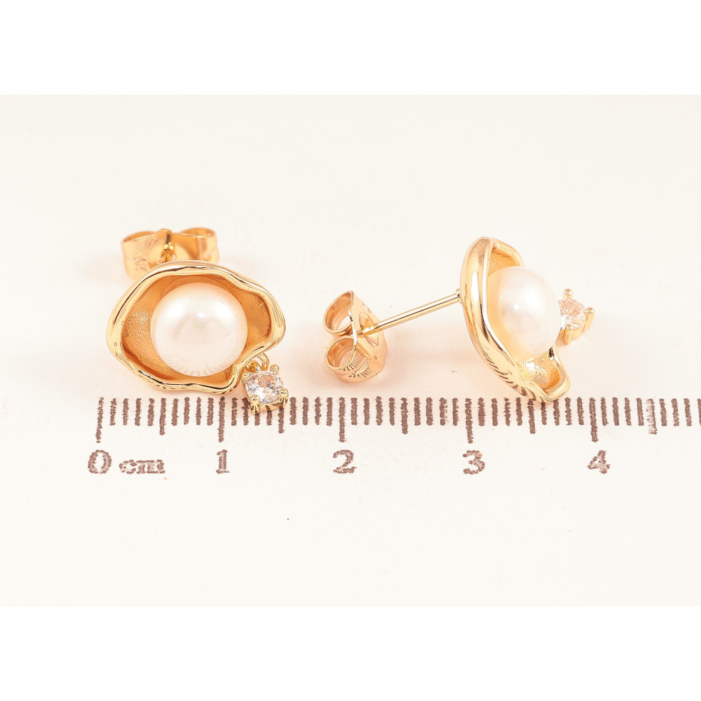 Сережки Xuping колір Позолота 18К пусети "Візерунок з перлинами та кристальними підвісками"
