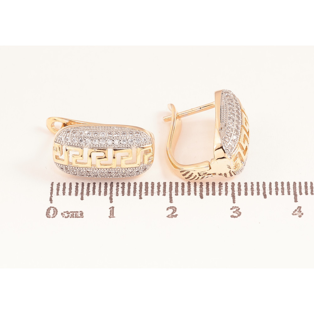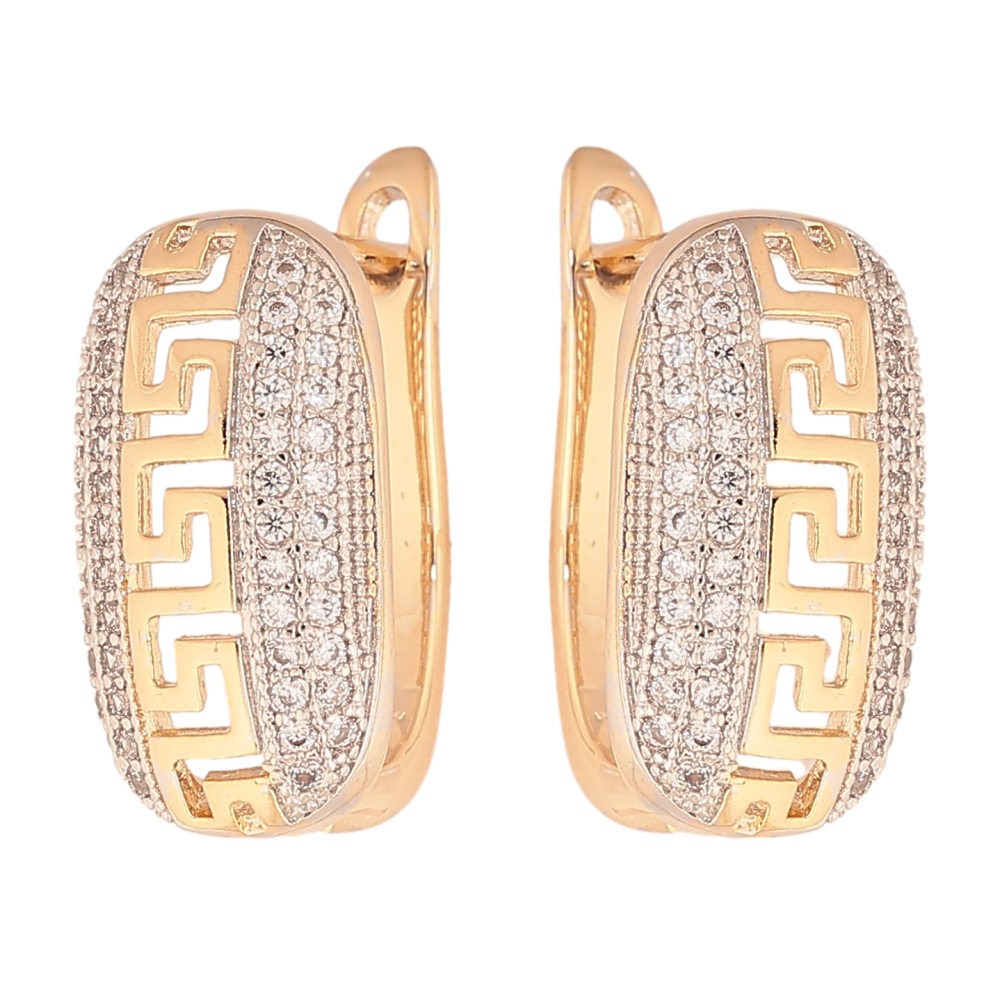 Сережки Xuping колір Позолота 18K + Родій англійський замок "Грецький візерунок з інкрустацією кристалами"