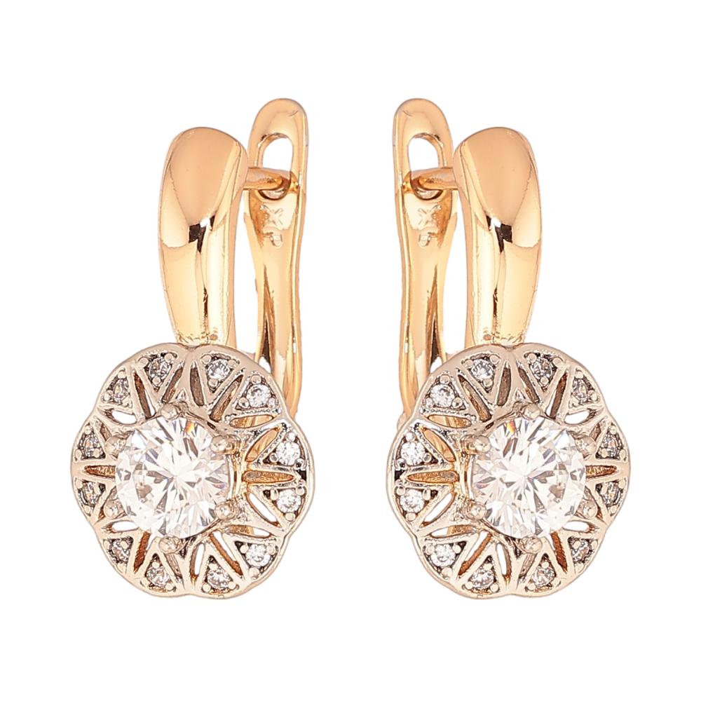 Сережки Xuping колір Позолота 18K + Родій англійський замок "Квіточки з кристалами"