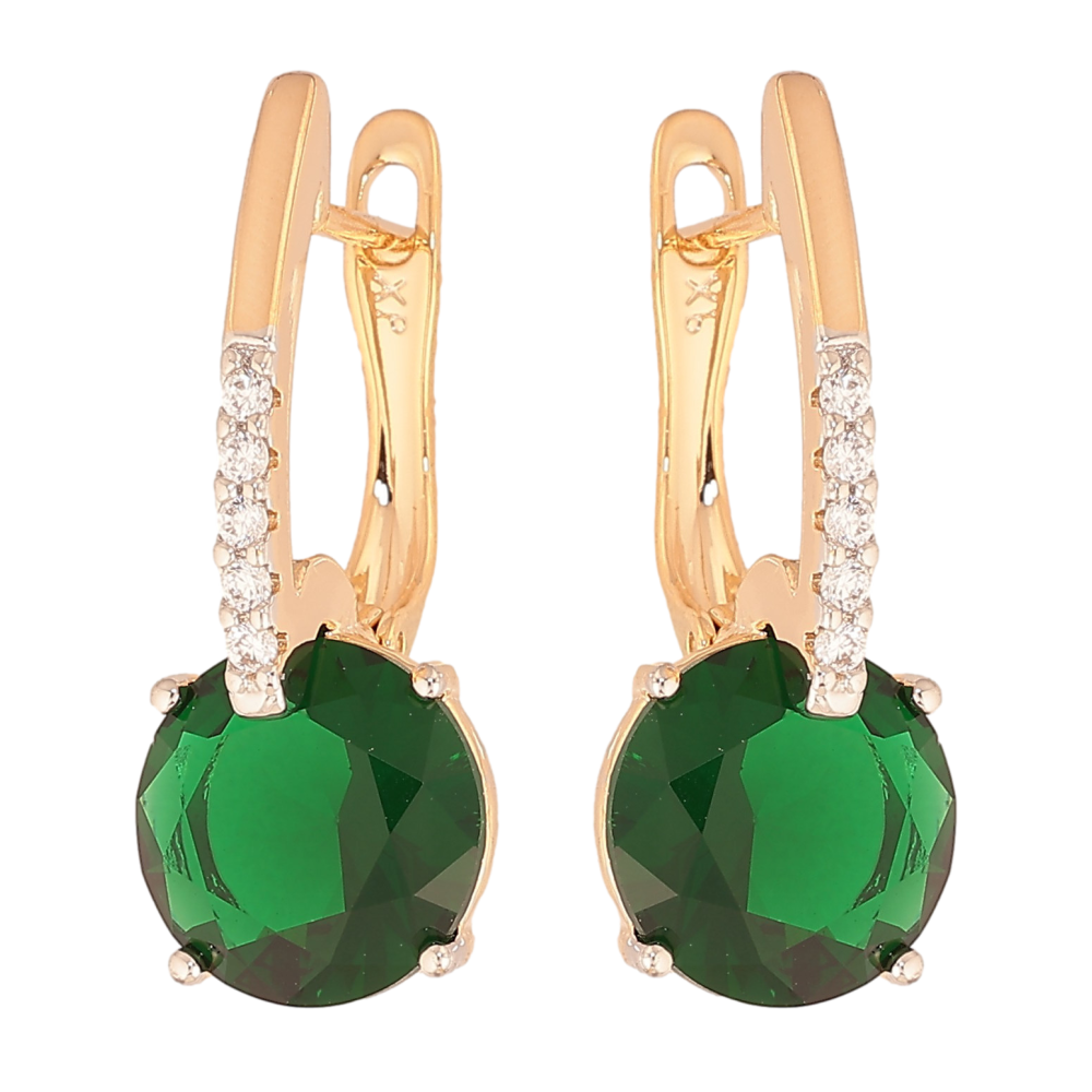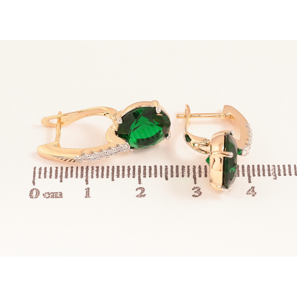 Сережки Xuping колір Позолота 18K + Родій англійський замок "Зелені кристали на дужках"