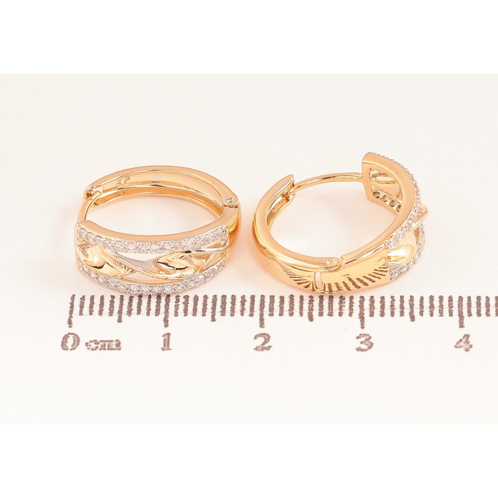Сережки Xuping колір Позолота 18K + Родій колечка "Декоративний візерунок із кристалами"