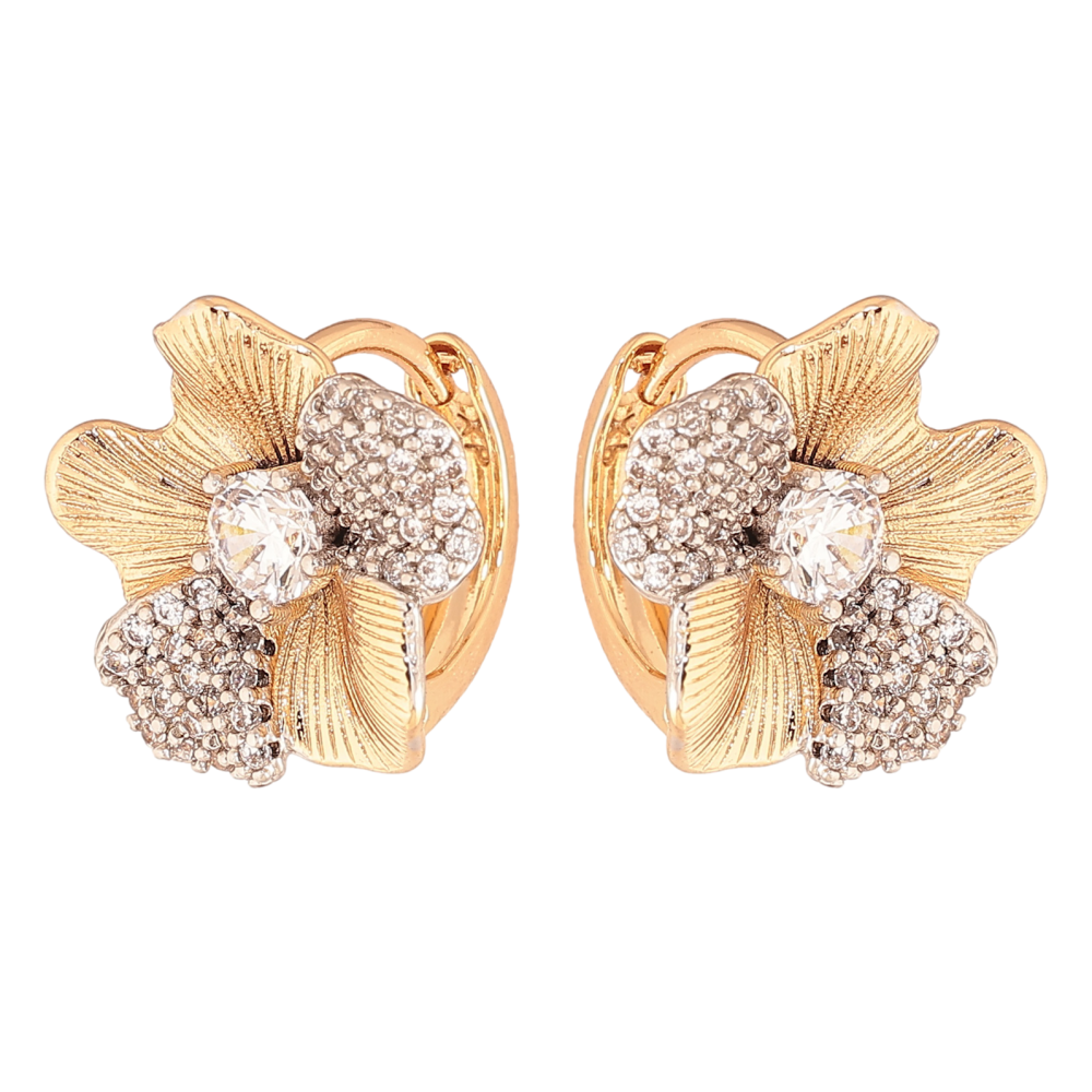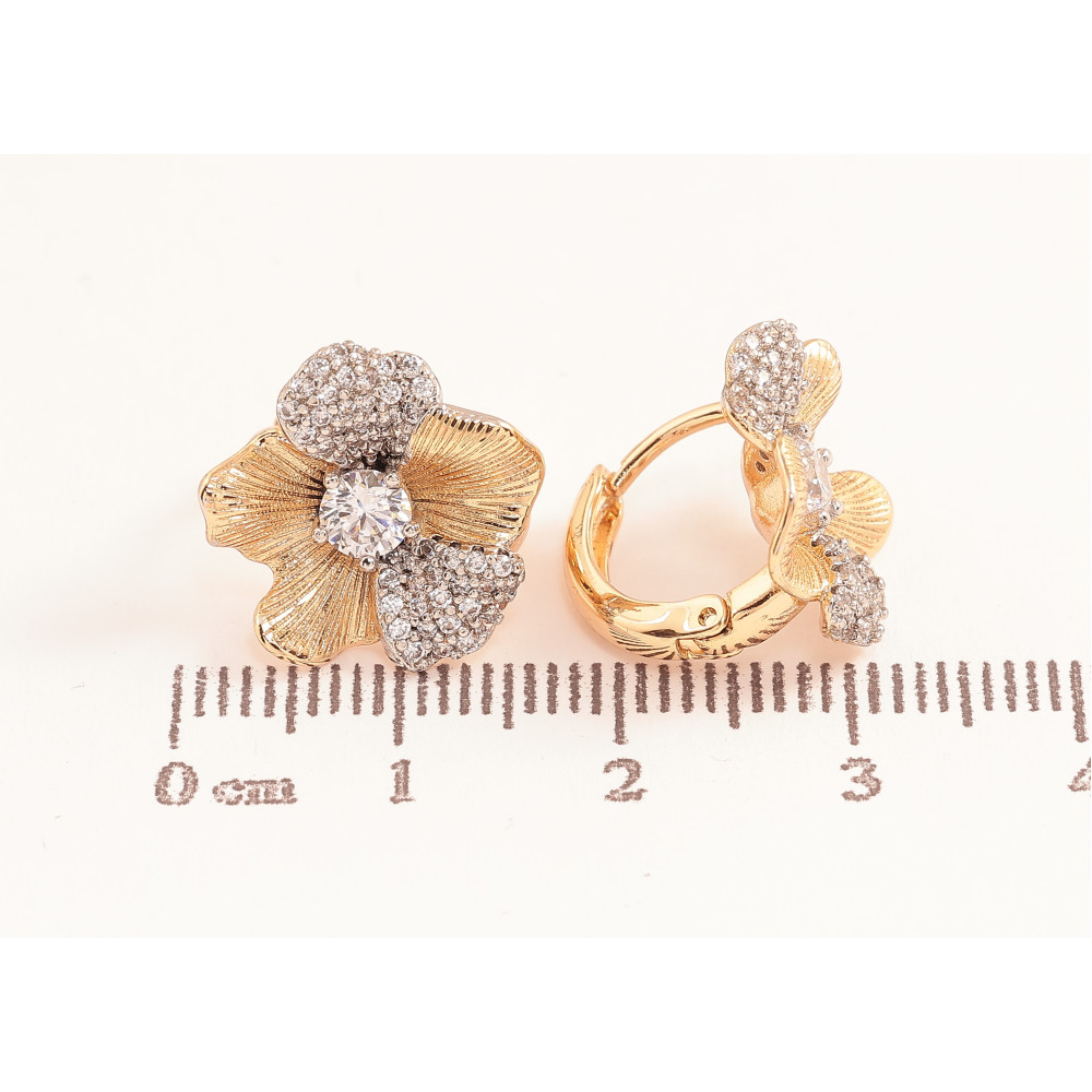 Сережки Xuping колір позолота 18K + родій колечка квіточки з інкрустацією кристалами