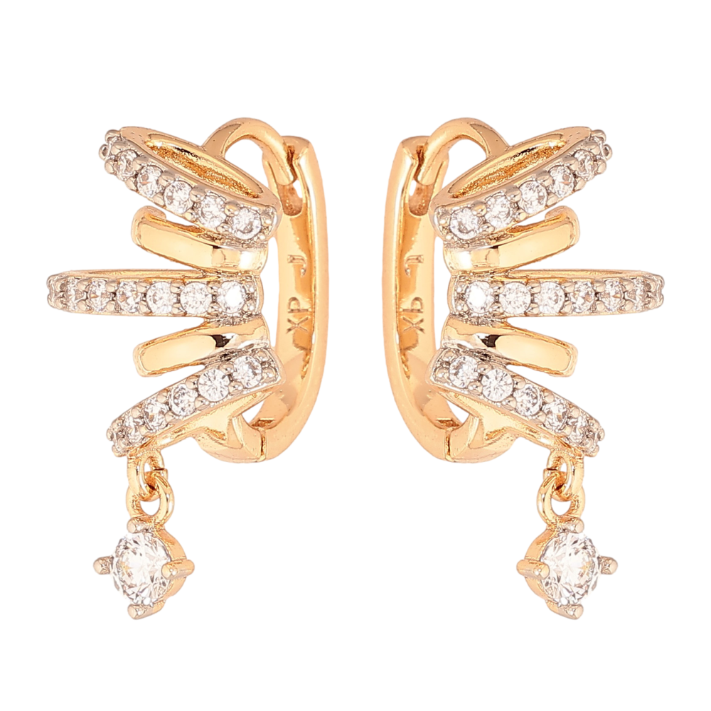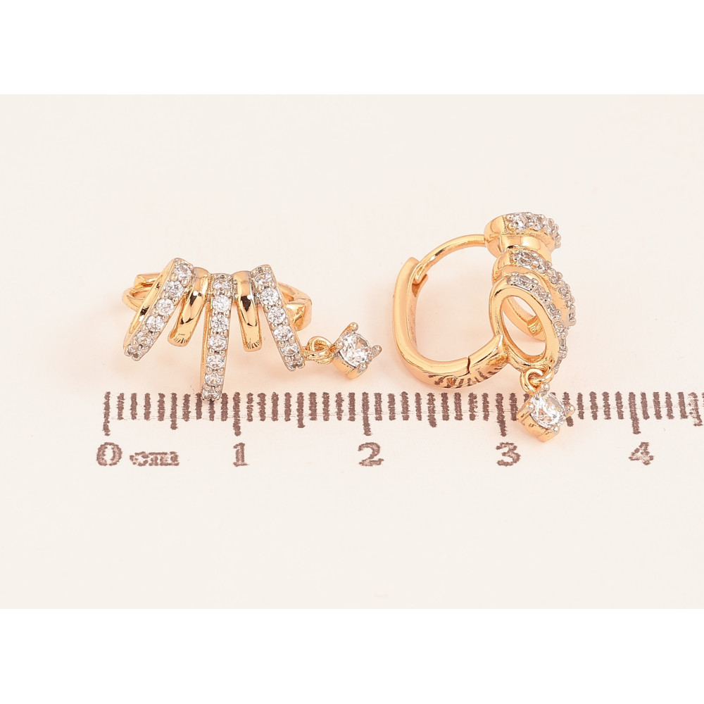 Сережки Xuping колір Позолота 18К+Родій підвіски на колечках "Візерунок з кристалами"