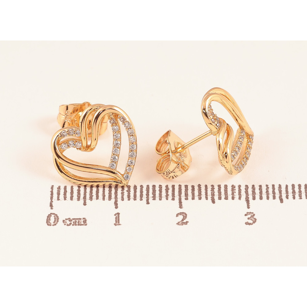 Сережки Xuping колір Позолота 18К пусети "Сердечки з кристалами"