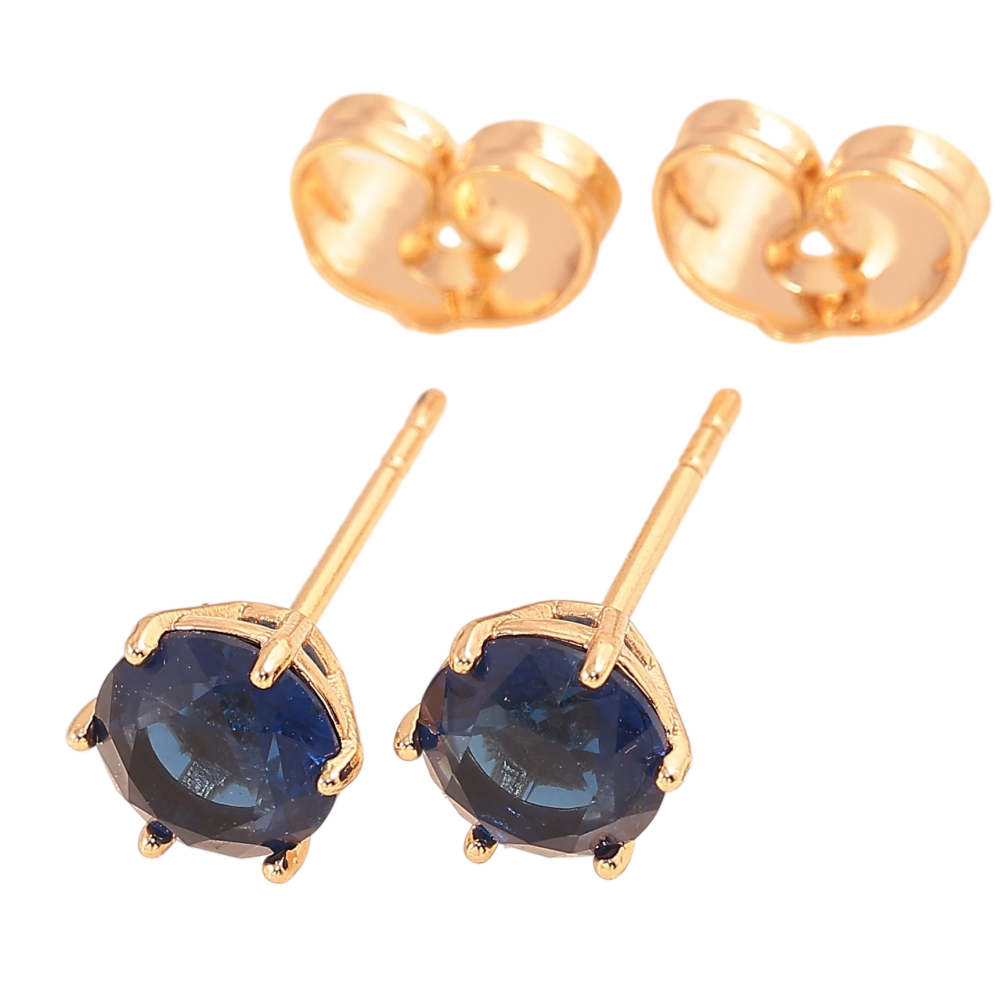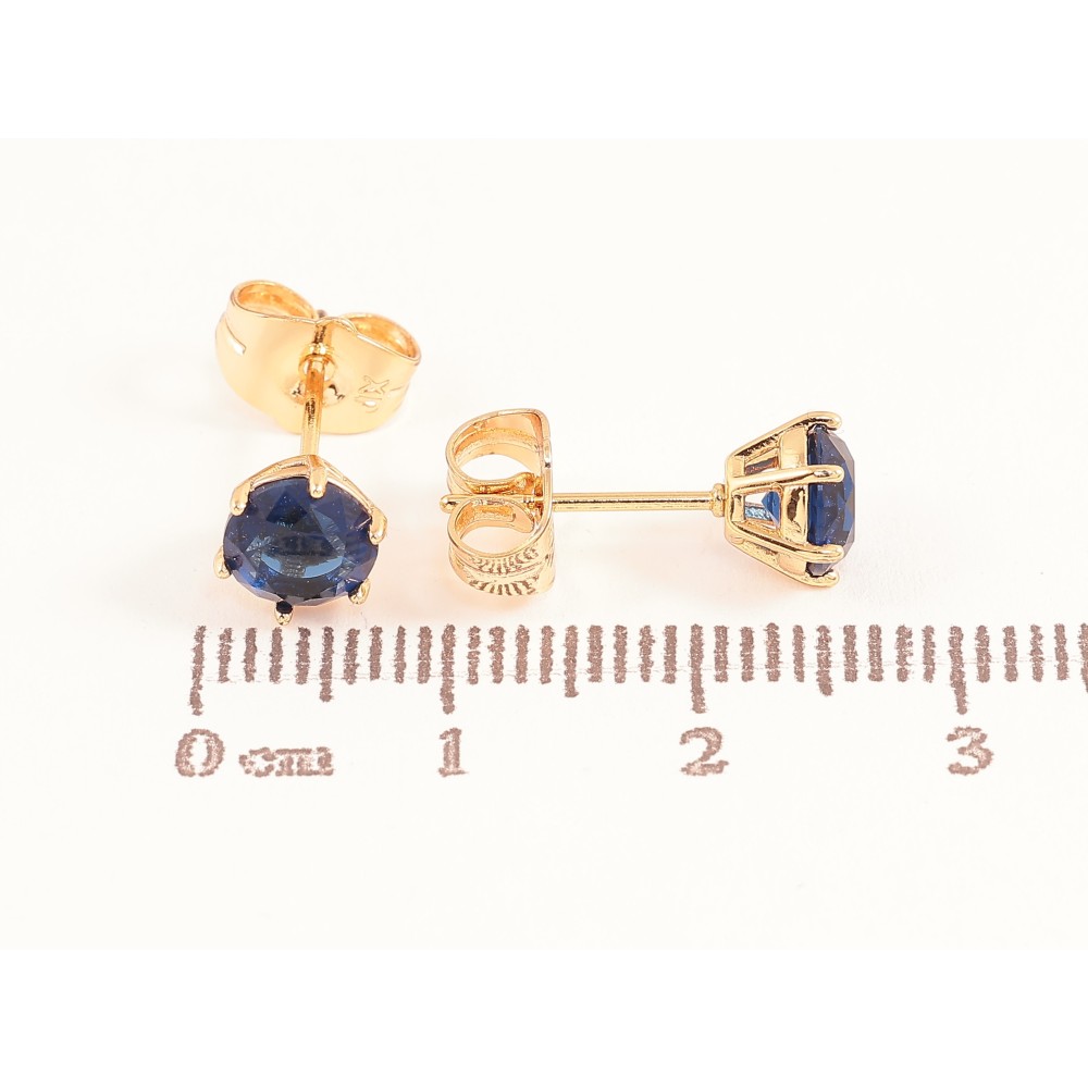 Сережки Xuping колір Позолота 18К пусети "Сині кристали в 6-ти крапановій оправі" ø 6мм