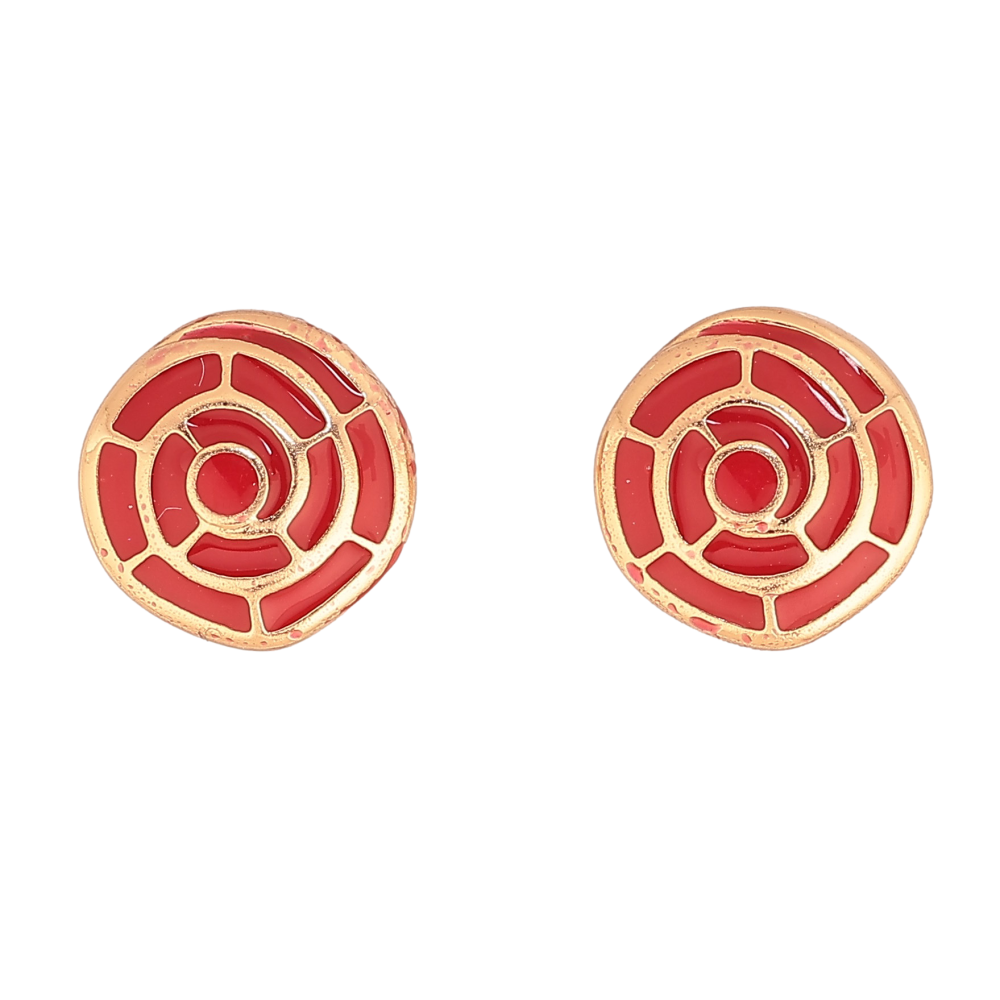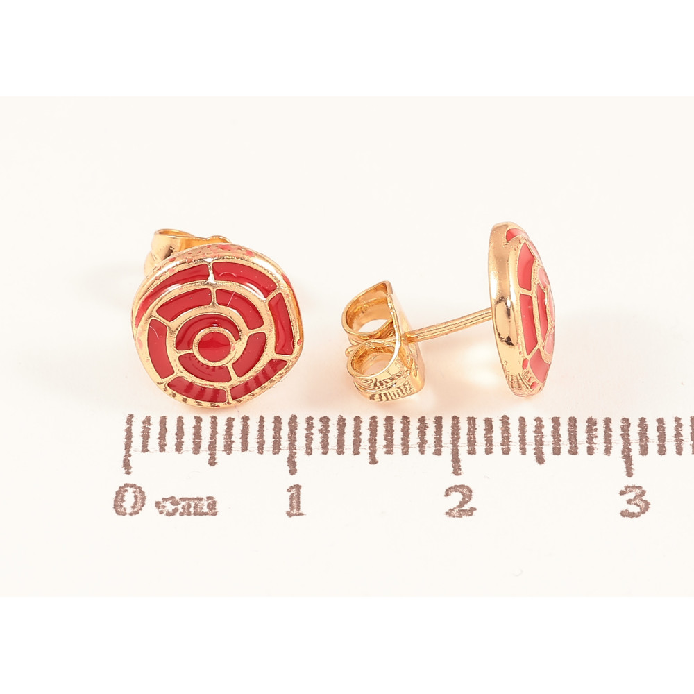 Сережки Xuping колір Позолота 18К пусети "Візерунок з червоною емаллю"