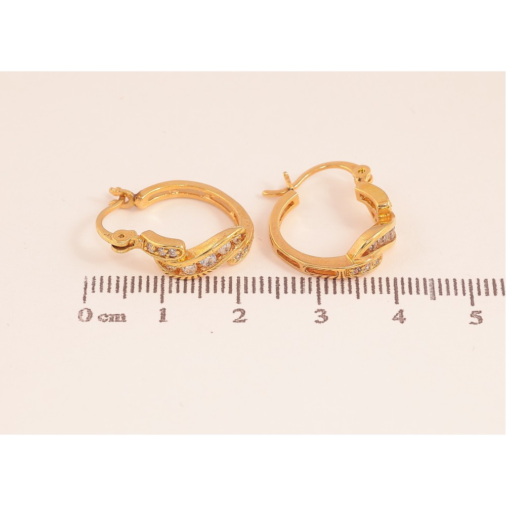 Сережки Xuping колір Позолота 18K замок-шпилька "Візерунок з кристалами" ø 1.6см