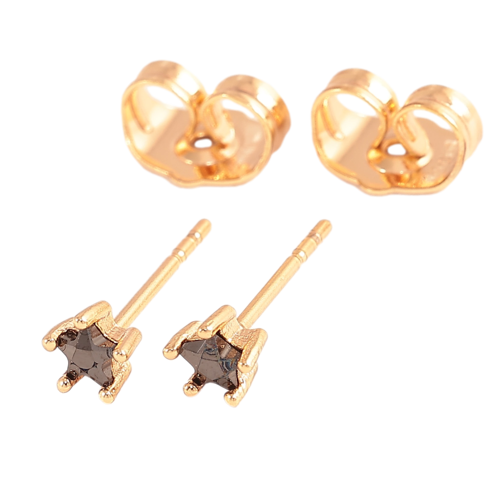 Сережки Xuping колір Позолота 18К пусети "Зірки із чорних кристалів" 4мм