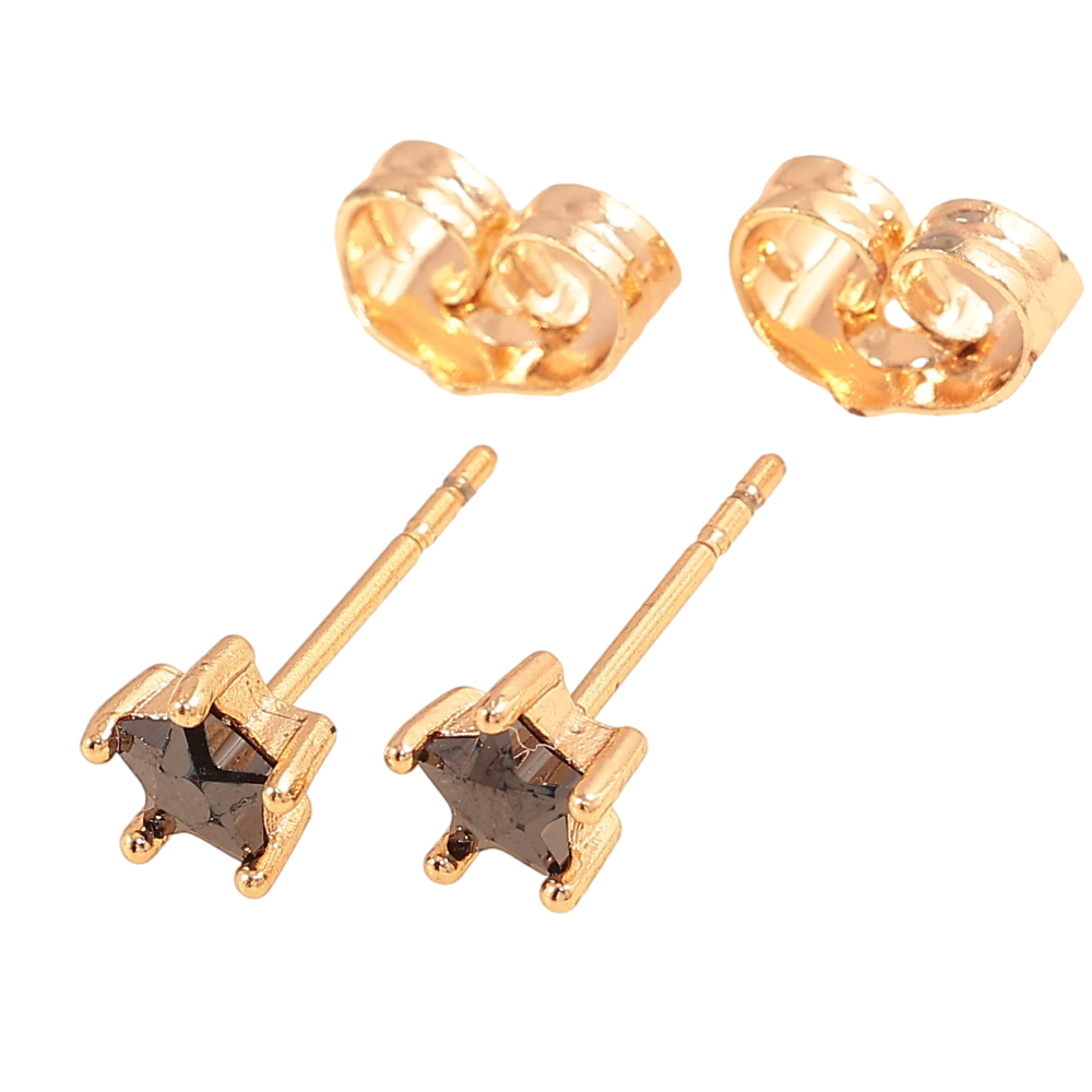 Сережки Xuping колір Позолота 18К пусети "Зірки із чорних кристалів" 5мм