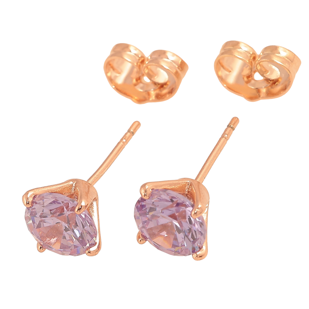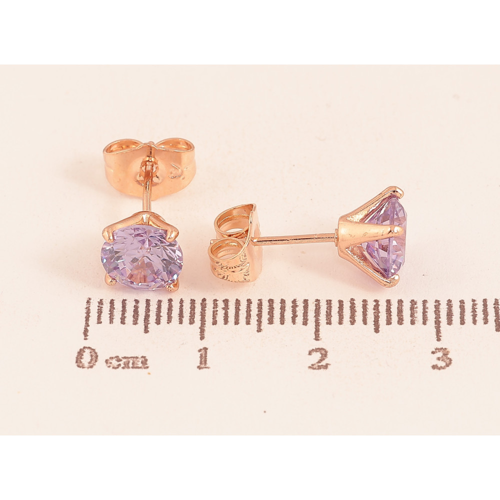 Сережки Xuping колір Позолота РВ пусети "Бузкові кристали в 4-х крапановій оправі" ø 7мм