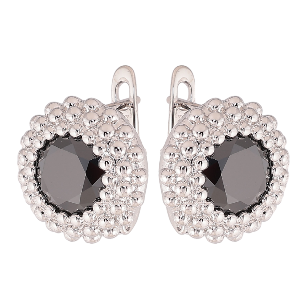 Сережки Xuping колір Родій англійський замок "Чорні кристали в декоративній оправі"
