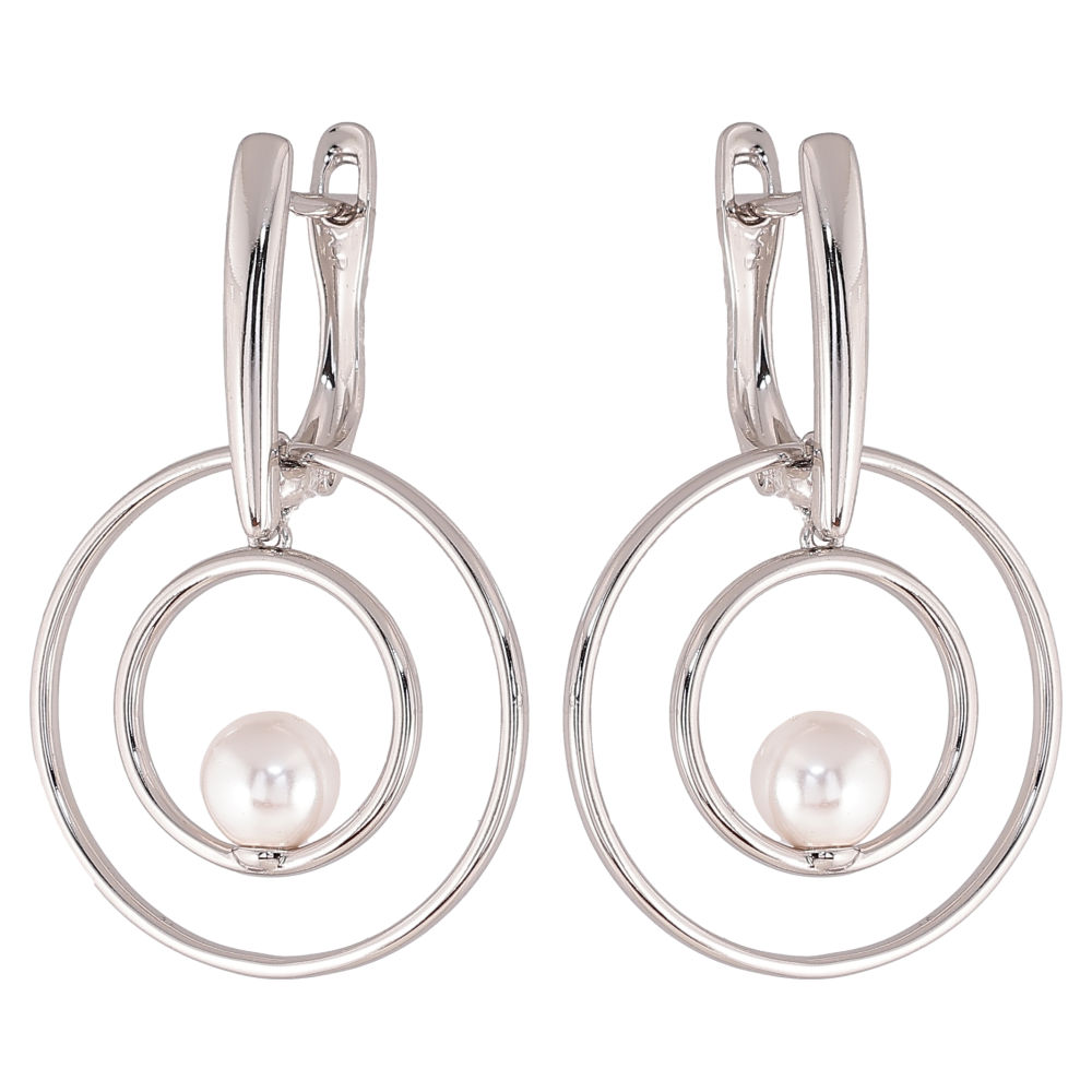Сережки Xuping колір Родій англійський замок "Кругі підвіски з перлинами"