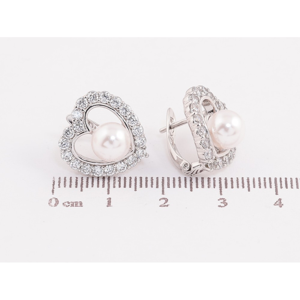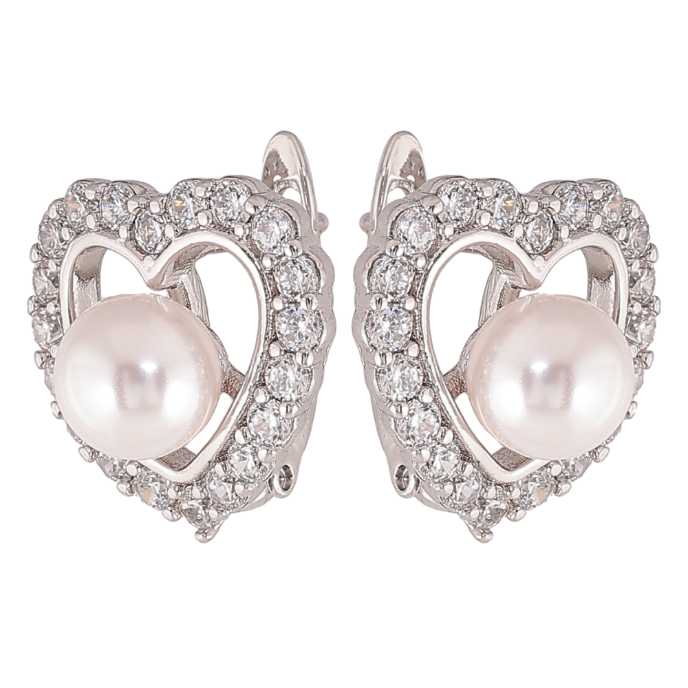 Сережки Xuping колір Родій англійський замок "Сердечки з кристалами та перлинами"