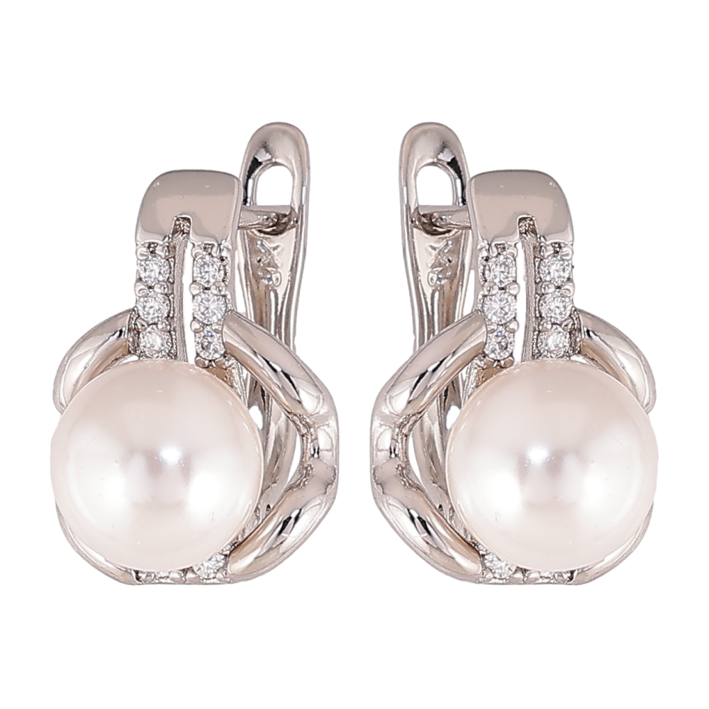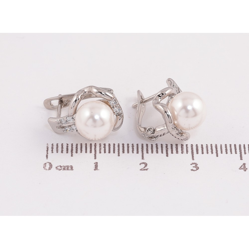 Сережки Xuping колір Родій англійський замок "Візерунок з кристалами і перлинами" фото №1