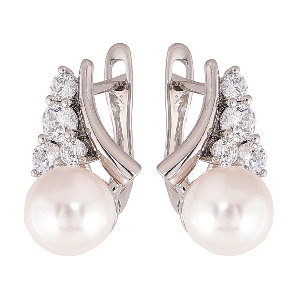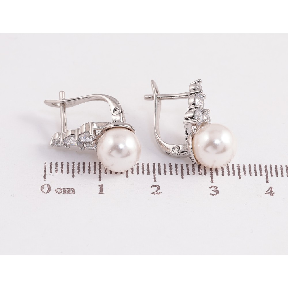 Сережки Xuping колір Родій англійський замок "Візерунок з кристалами та перлинами" фото №1