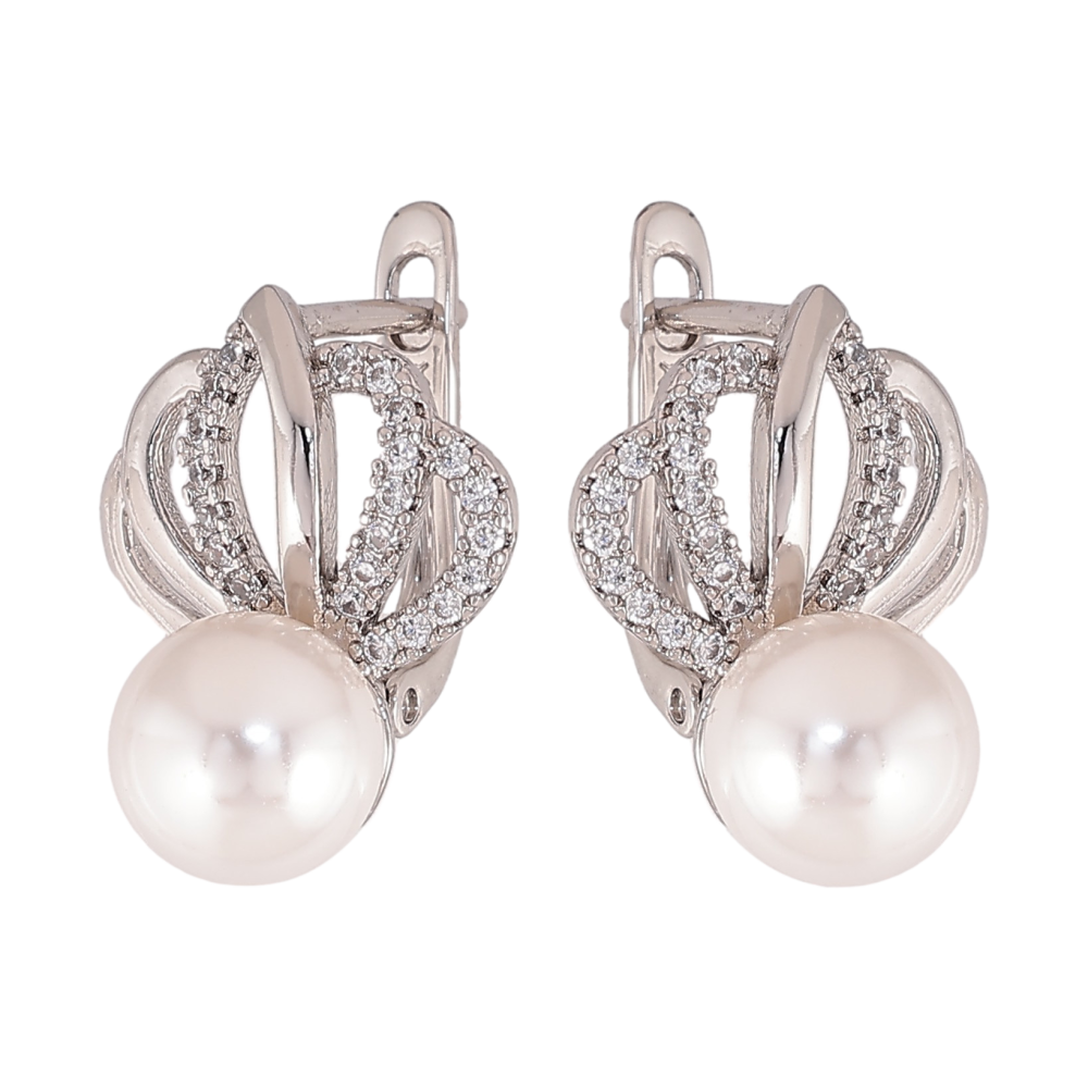 Сережки Xuping колір Родій англійський замок "Візерунок з перлинами"