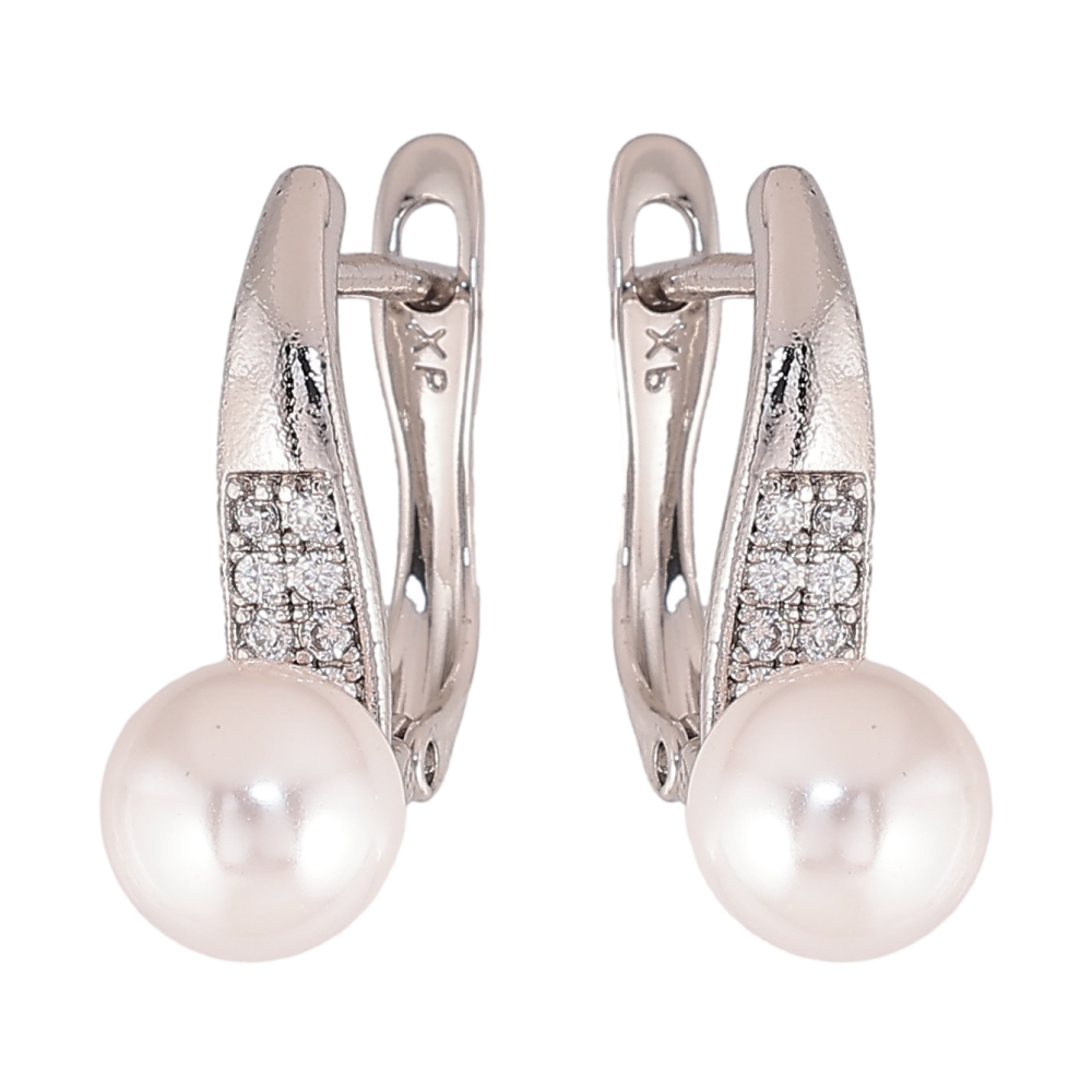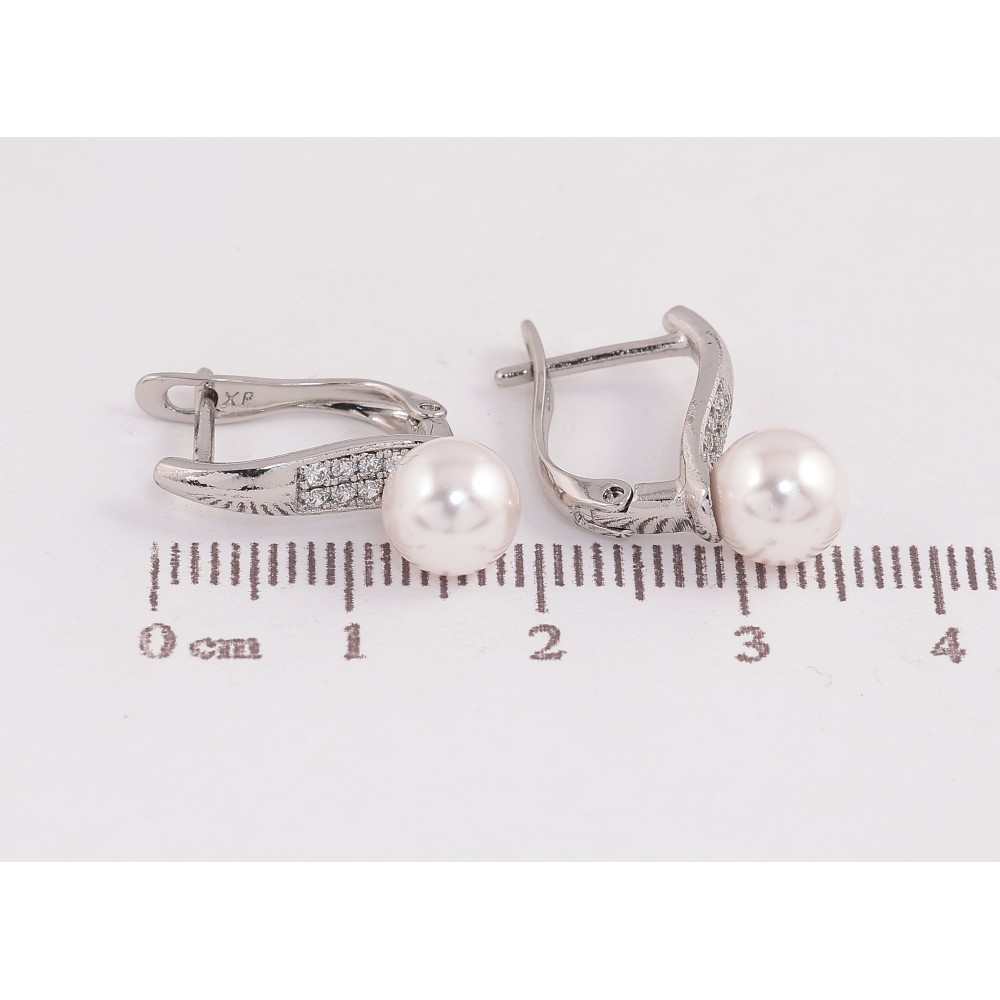 Сережки Xuping колір Родій англійський замок "Візерунок з перлиною"