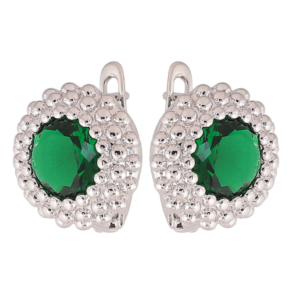 Сережки Xuping колір Родій англійський замок "Зелені кристали в декоративній оправі"