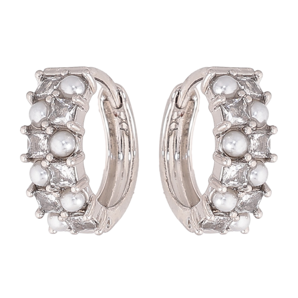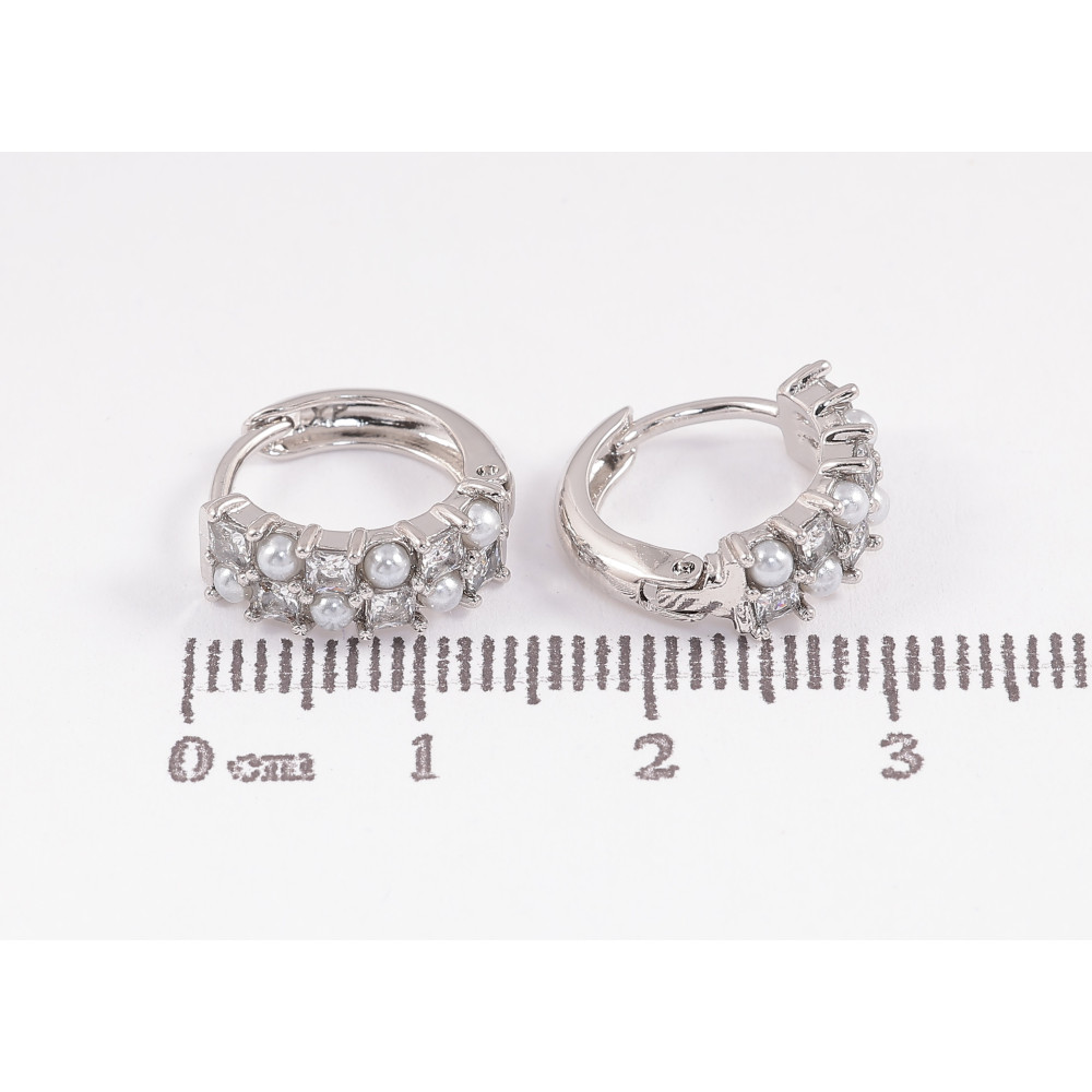 Сережки Xuping колір Родій колечка "Візерунок з перлинами та кристалами"