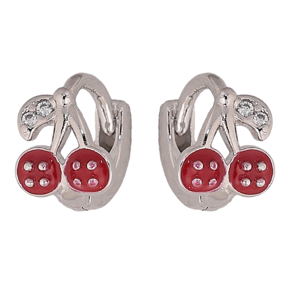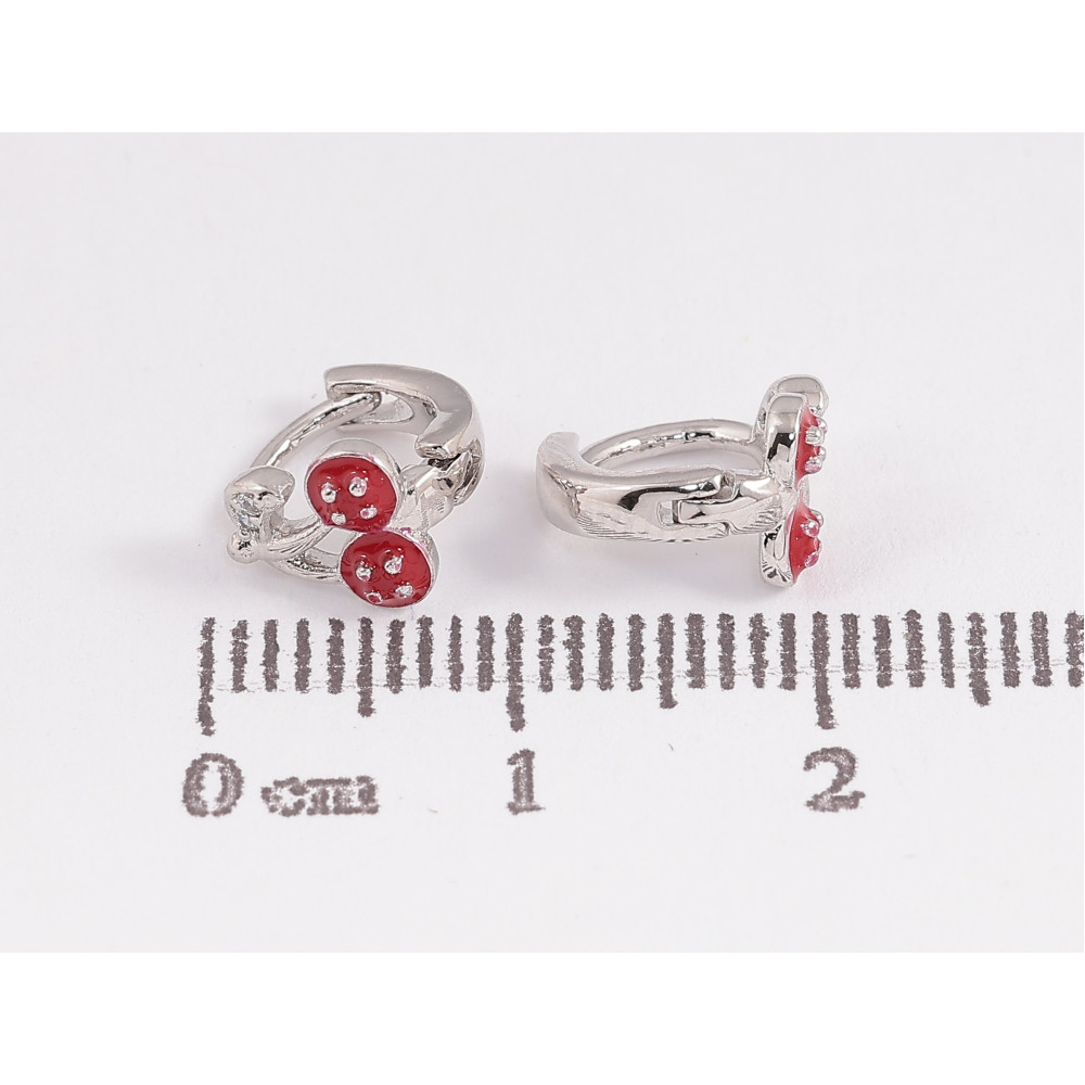 Сережки Xuping колір Родій колечка "Вишеньки з червоною емаллю"