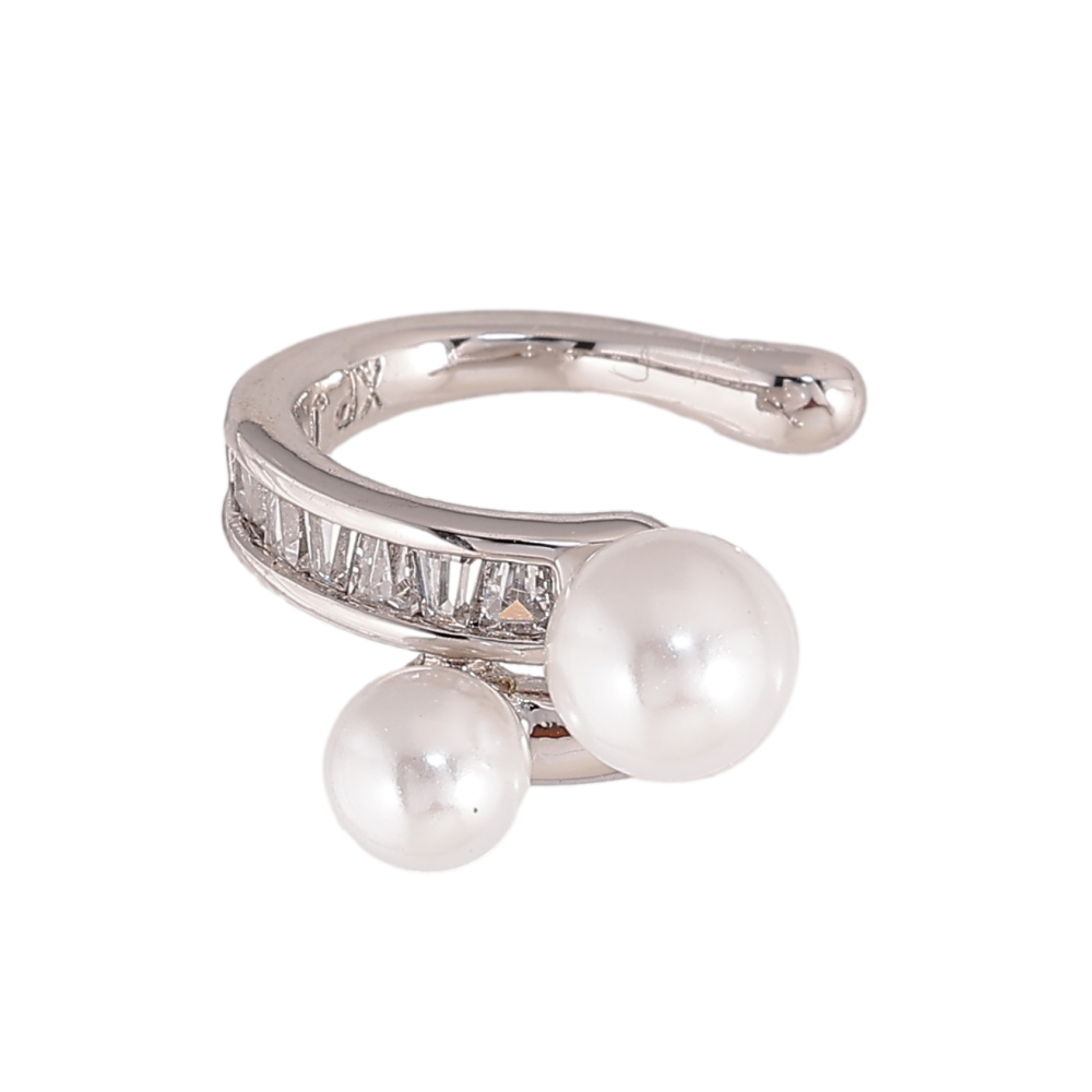 Сережки Xuping колір Родій моно-каффа "Візерунок з кристалами і перлинами"