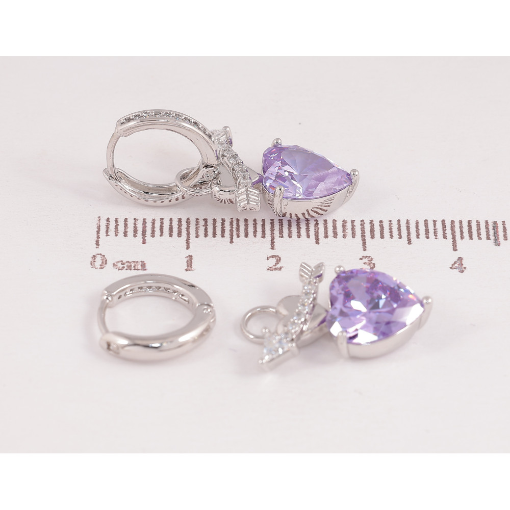 Сережки Xuping колір Родій підвіски на колечках "Кристальні бузкові серця" 2 в 1